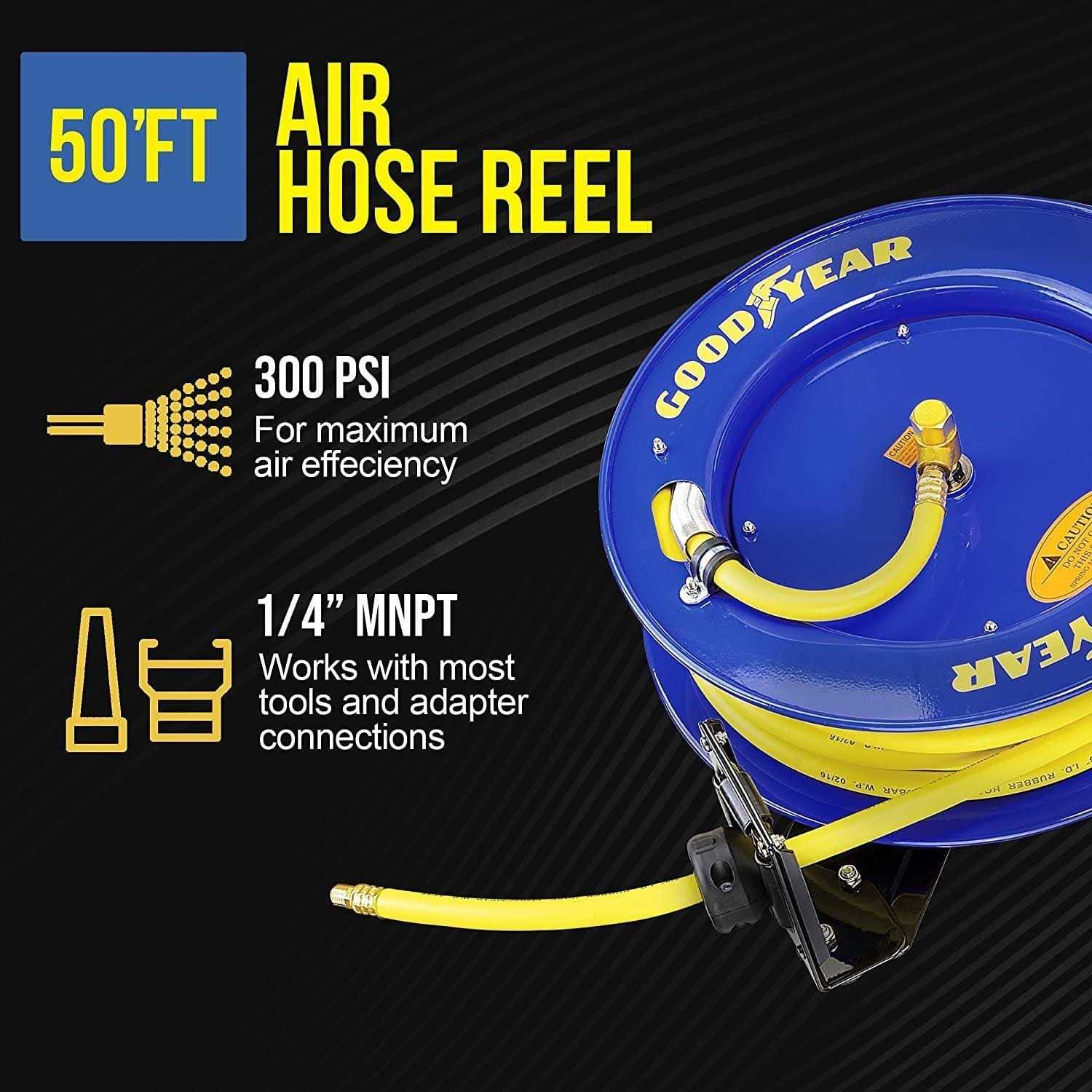 Goodyear Air Hose Reel Retractable 3/8″ inch x 50 Foot SBR Rubber Hose