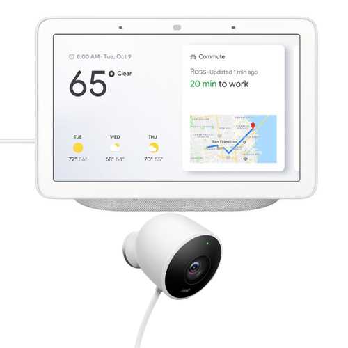 Google Nest Hub with Google Assistant (GA00516-US) & Google Nest Cam Outdoor
