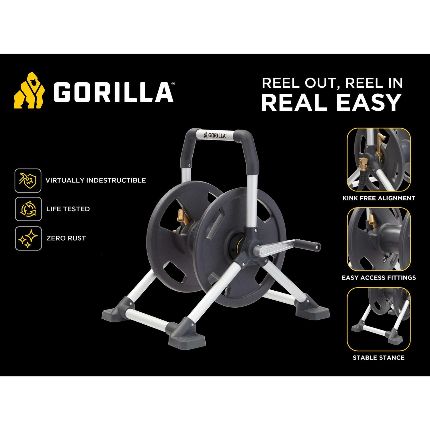 Gorilla 150 ft. Black & Gray Retractable Free Standing Hose Reel Cart