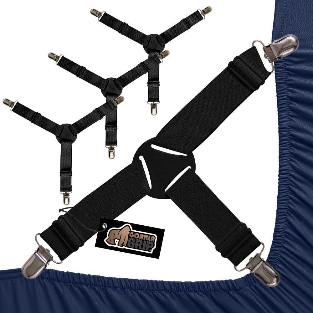 Gorilla Grip Bed Sheet Straps, Adjustable Elastic Fasteners with Metal Clips, Keep in Place Fitted Bedding Holder, Easy Install Suspenders