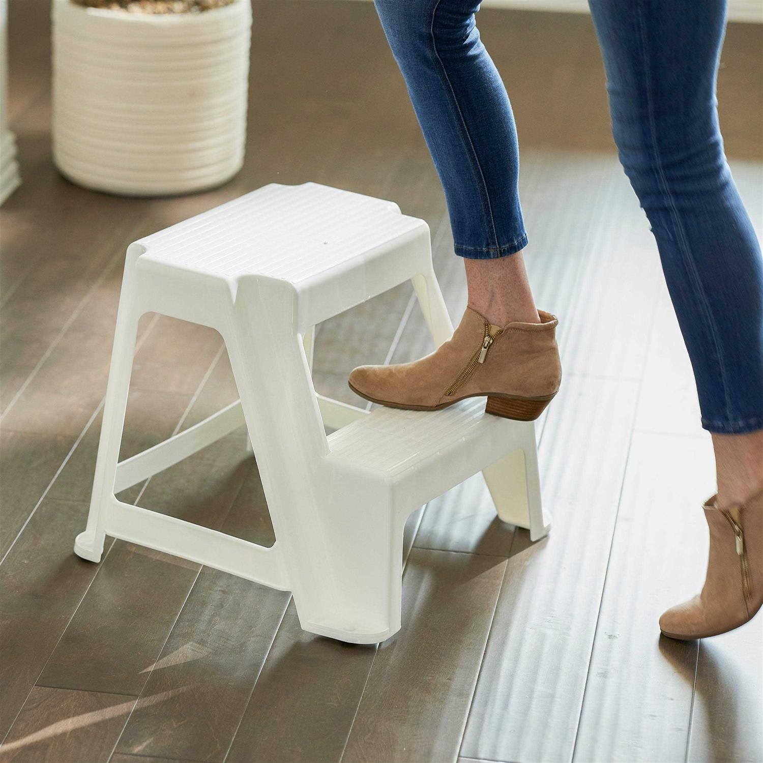 Gracious Living 18.75″ Sturdy Non Slip Plastic 2-Level Step Stool, White (4 pck)