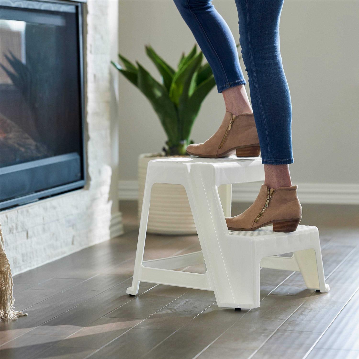 Gracious Living 18.75-Inch Tall Sturdy Non Slip Plastic 2-Level Home Step Stool