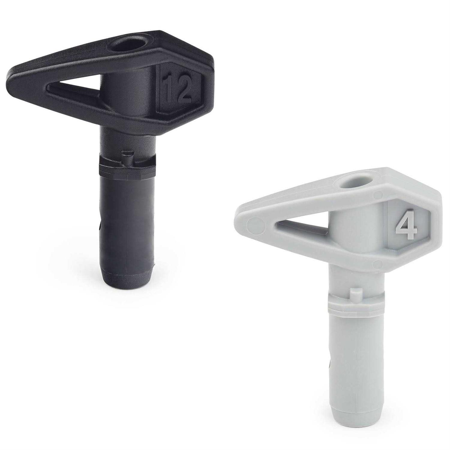 Ensure the best quality finish for your small to medium size projects with these high precision TrueCoat Reverse-A-Clean spray tips. The narrow tip is for small surface projects such as doors, trim, garage doors and furniture. The wide tip is for medium-size surface projects such as interior walls, ceilings or exterior surfaces such as decks and fences. Sprays a wide variety of coating from stains to heavy latex and acrylics. (Do not use with materials that state “flammable” on packaging.) The narrow 4 In. tip is for stains, enamels and thin latex – 0.015 In. tip hole (orifice) and spray pattern is controlled to 4 In. width. The wide 12 In. tip is for stains, enamels and thin latex – 0.015 In. tip hole (orifice) and spray pattern is controlled to 12 In. width. Installs easily without tools for easy and quick tip changes. Reversible tip design lets you quickly clear the tip of any clogs with just a twist, eliminating downtime. Replace the tip when the fan pattern has lost 25% of its original size. For use with TrueCoat 360 model sprayers only.