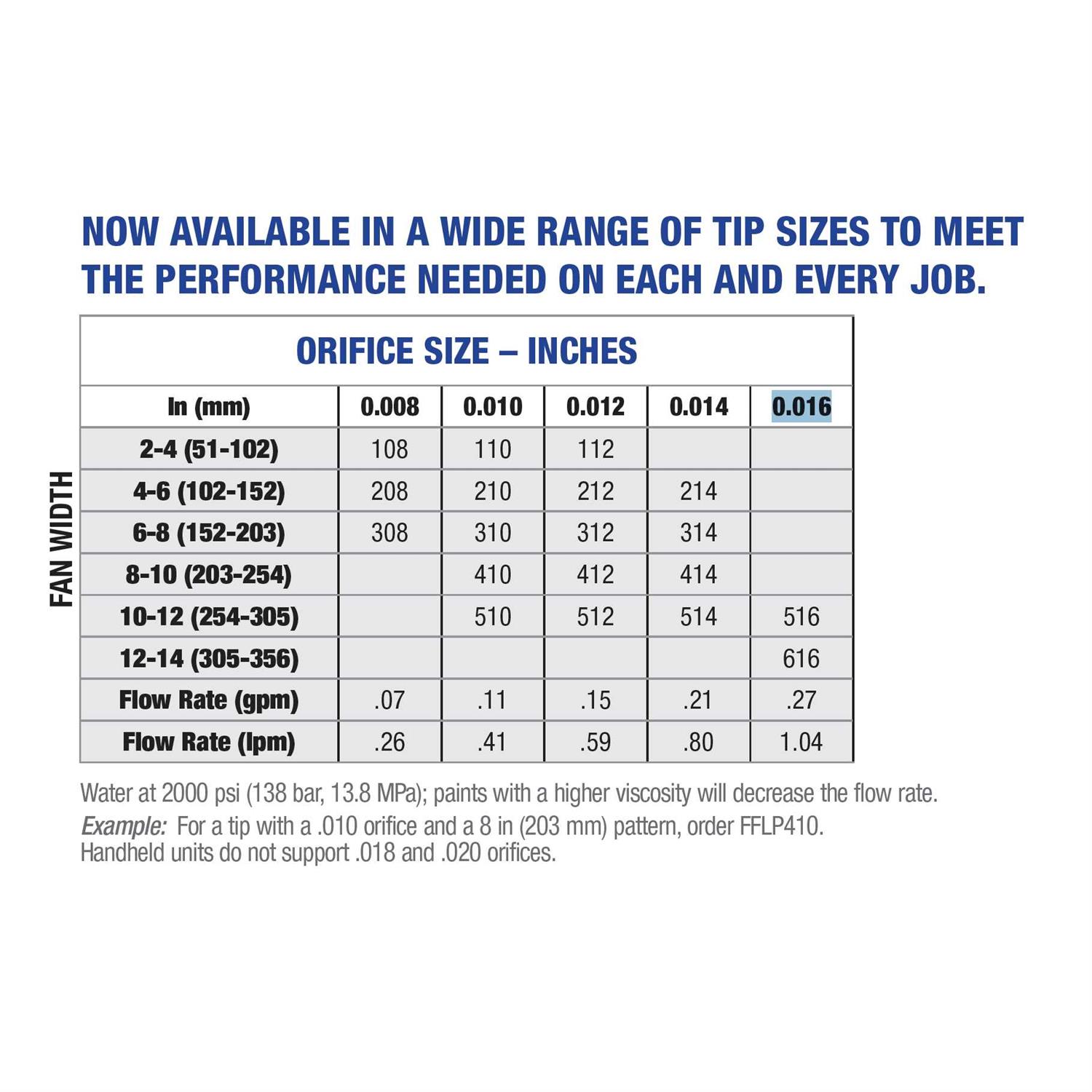 - Fine Finish Tips enable spraying at lower pressure, meaning more control, less overspray, tighter, more consistent fan pattern
