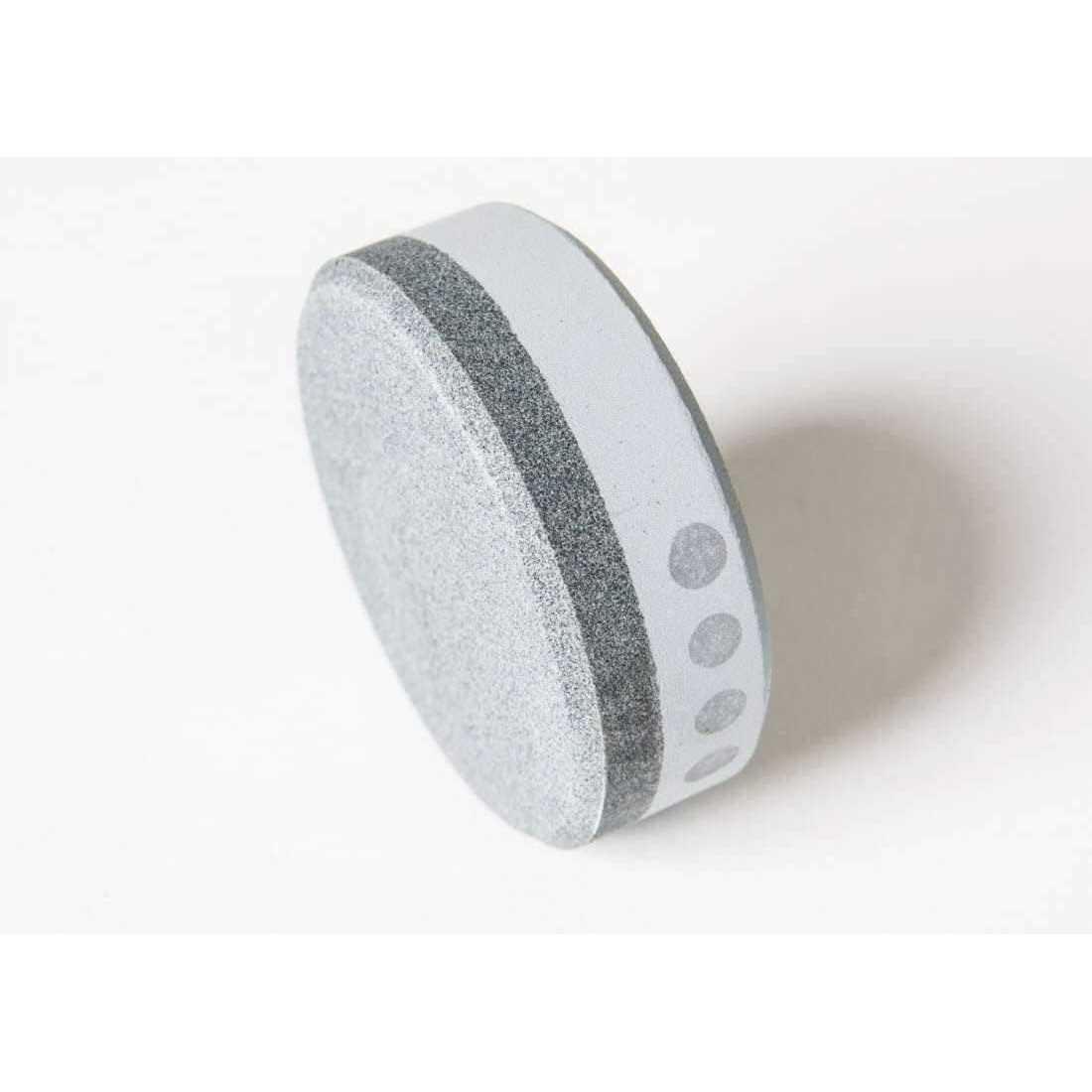 Gränsfors ceramic sharpening stone The ceramic sharpening stone from Gränsfors consists of ceramic abrasives, the grain structure of which is designed to optimally meet the need for coarse and fine grinding. It has a coarser side with a grain size of 180 for damage caused by somewhat coarser wear and tear, and a finer side with a grain size of 600 for fine grinding. The composition of the grain makes the stone durable and tough. In contrast to natural stone, ceramic whetstones have a more precise grit. The stone is round and flat in shape, with beveled edges to provide a rounded transition. The fine side makes up 2/3 of the strength because this side is usually used and worn the most. The stone is usually used with water, but it can also be used dry. The sharpening stone has a protective rubber shell. Gränsfors Bruk has three different products for sharpening that are relatively similar: a ceramic sharpening stone, the diamond file and a sharpening stone made of natural stone. The main difference between these products lies in the material, but the grain size and shape of the products are also different. Which of the products you should choose depends on your own preferences and personal taste.