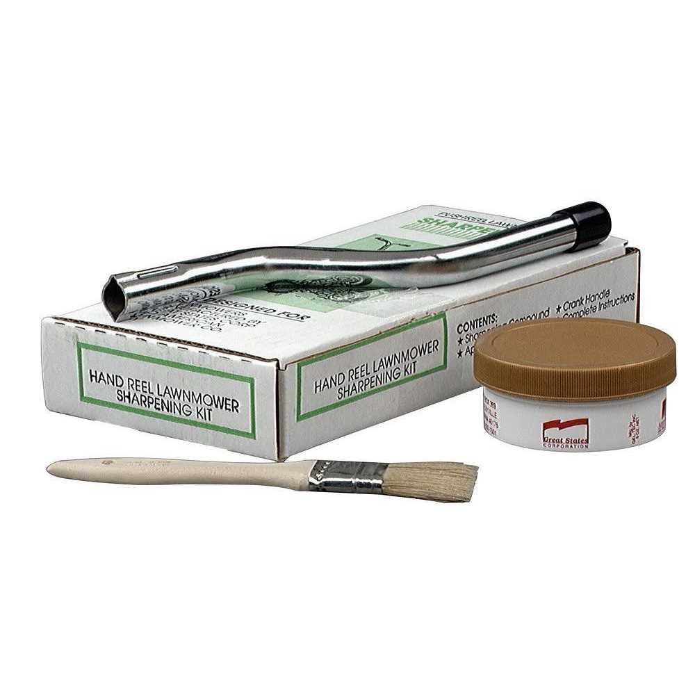 Improve the performance of your lawn mower by accessorizing it with the “Great States SK-1 Reel Mower Sharpening Kit”. Contributing to seamless use, this durable and sturdy unit measures 12″H x 12″W x 12″L. Compact and easy to use, it weighs 1.06 lbs. Dimensions: 12″H x 12″W x 12″L. Includes grinding compound, application brush and back-lapping crank. Kit keeps reel blades in top cutting form.Cuts down on mowing time. Designed for use with 1705-16 and 1815-18 push mowers.