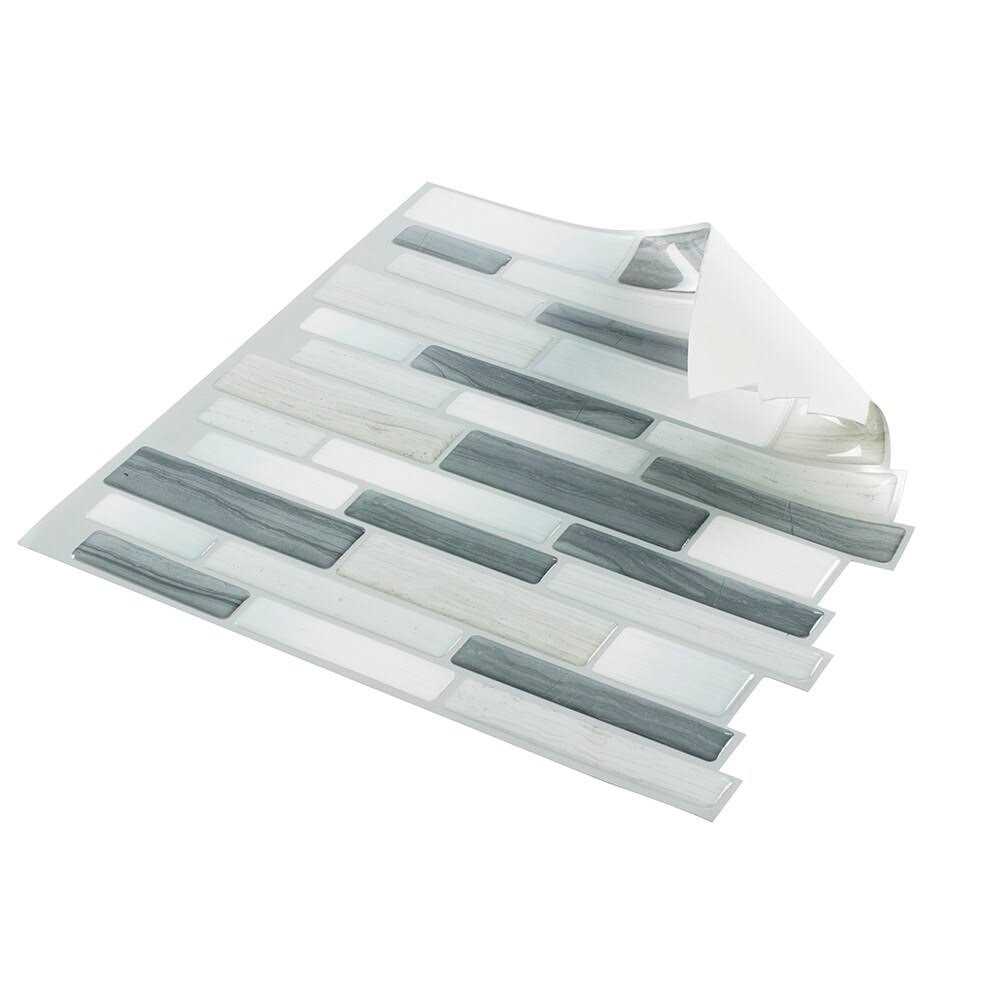 This Peel-and-Stick Mosaic Wall Tile in gray mist adds a stylish, bold accent to any room. Peel-and-Stick Mosaics feature a strong adhesive backing that’s created to last a lifetime. Due to its adhesive element, this peel-and-stick mosaic is not recommended to be placed in areas with high moisture. Peel-and-stick application requires no grout. Ideal for interior walls such as kitchen backsplashes or accent tile.- Tile Dimensions: 10″W x 9. 4″L- Thickness: 1mm- Coverage: Each tile covers 0. 65 sq. ft.- Weight: 0. 2 lbs.- Sold as individual piece of tile Suitable for interior walls such as backsplashes or accents Actual Dimensions: 10″W x 9. Peel and Stick mosaics wall tile adds a bold accent to any room This mosaic pattern is always stylish Inspect all tile before installing, no claims will be considered after installation Peel-and-stick application requires no grout or tools for installation The ideal choice for any installation looking for a clean modern look Blended beauty of mother nature with artistic colors Ideal for renovations, backsplashes, shower walls, fireplaces and more