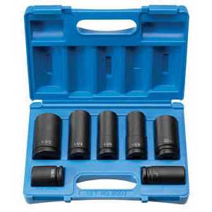 Features and Benefits: 26 Piece Impact Socket Set 3/4″ Drive Includes 6 Point sizes 19mm to 50mm Includes metal storage case Weight 32.92 lbs. Packaged in a metal storage case Our impact sockets grip the fastener across a broader contact area reducing chance of rounding off fasteners. They also allow up to 20% more torque to be applied than on other impact sockets. The shift in pressure allows us to reduce the socket wall thickness increasing access to tight areas. Contains Sizes: 19mm 20mm 21mm 22mm 23mm 24mm 25mm 26mm 27mm 28mm 29mm 30mm 31mm 32mm 33mm 34mm 35mm 36mm 38mm 40mm 41mm 42mm 43mm 44mm 46mm 50mm in standard length. Packaged in a metal case.