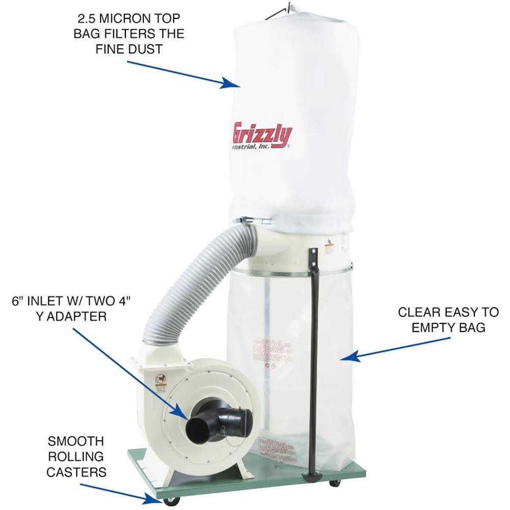 Grizzly G1029Z2P – 2 HP Dust Collector with Aluminum Impeller – Polar Bear Series