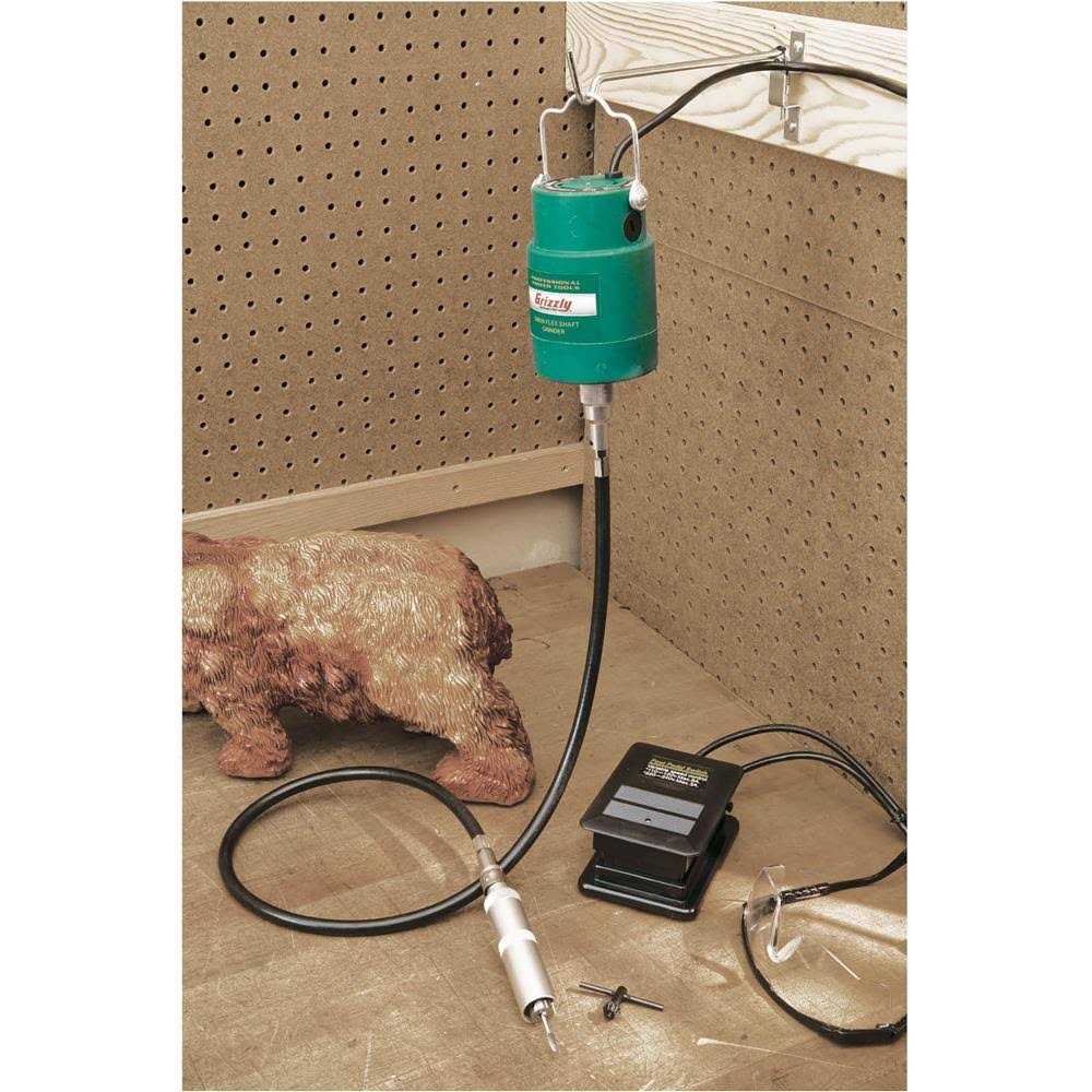 Hang the motor overhead and use the 42-Inch long flex shaft to maneuver around your work piece the foot pedal controls the speed from 0 to 15 000 rpm. The foot pedal controls the speed from 0 to 15 000 rpm. Includes motor hanger 532-Inch keyed chuck hand piece. Hang the motor overhead and use the 42-Inch long flex shaft to maneuver around your work piece. the foot pedal controls the speed from 0 to 15 000 rpm. includes motor hanger 532-Inch keyed chuck hand piece. to use chisels please order h0757 4-pc. carving chisels.