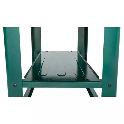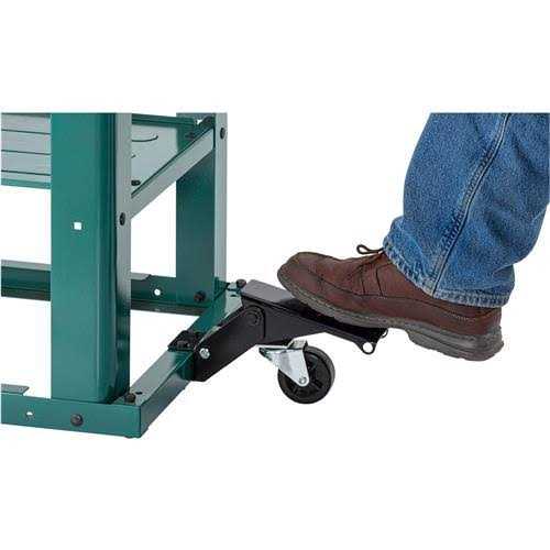 T33204 Mobile Machine Stand A stable and strong tool stand for the heaviest bench tools. Constructed of heavy gauge steel, this table was built for heavy loads. Place your benchtop planer on this table and instantly transform the space into dedicated workstation. The easy to maneuver mobile base includes a foot pedal that can be mounted on the inside to prevent trip hazard or mounted on the outside for convenient access. Built-in shelf supports allow for mounting a shelf if desired. The T33204 manual was written by our U.S. based Technical Documentation Department and is packed with useful information. The complete and easy-to-read manual makes it easier to assemble and maintain your machine stand. SPECIFICATIONS: Maximum weight capacity: 300 lbs. Overall dimensions: 21″ W x 24″ L x 29-1/2″ H Note: Do not mount machines with high centers of gravity such as table-top drill presses or mortising machines on this stand. Maximum weight capacity: 300 lbs. Overall dimensions: 21″ W x 24″ L x 29-1/2″ H.