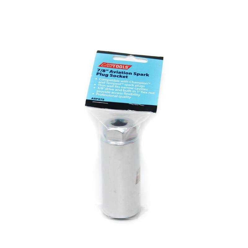 Aviation spark plugs have special needs. They use a non-standard 7/8 hex, and exhaust manifolds can get in the way of wrench access. A thin-wall socket is necessary for many applications. And to ensure compatibility with all makes of plugs including Champion and Tempest, a deep well is called for.This CruzTOOLS Aviation Spark Plug Socket meets all these needs, with a combo hex and 3/8 drive for additional flexibility.