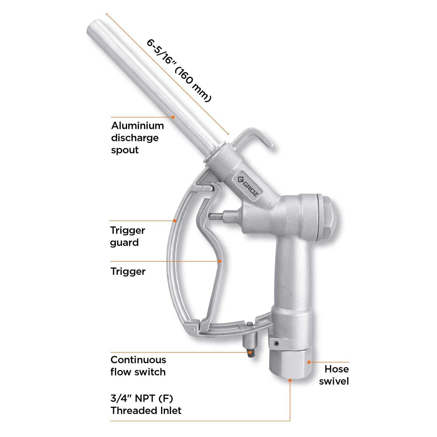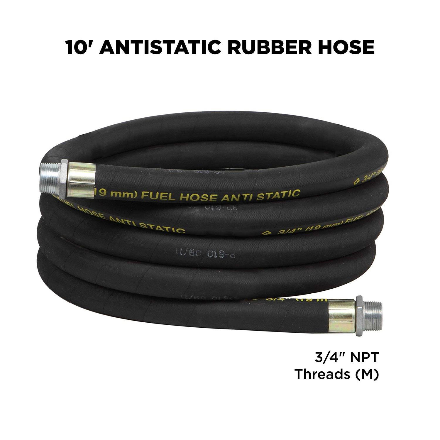 Gravity feed dispensing kit includes 3m anti-static hose fitted with manual fuel control nozzle with swivel Hose has a static wire that dissipates electricity for safety. Metal nozzle body; aluminum guard, discharge spout, and trigger; nitril rubber hose With continuous flow switch which can be controlled manually for unattended dispensing Great for commercial and industrial use, ideal for diesel, gasoline, and kerosene
