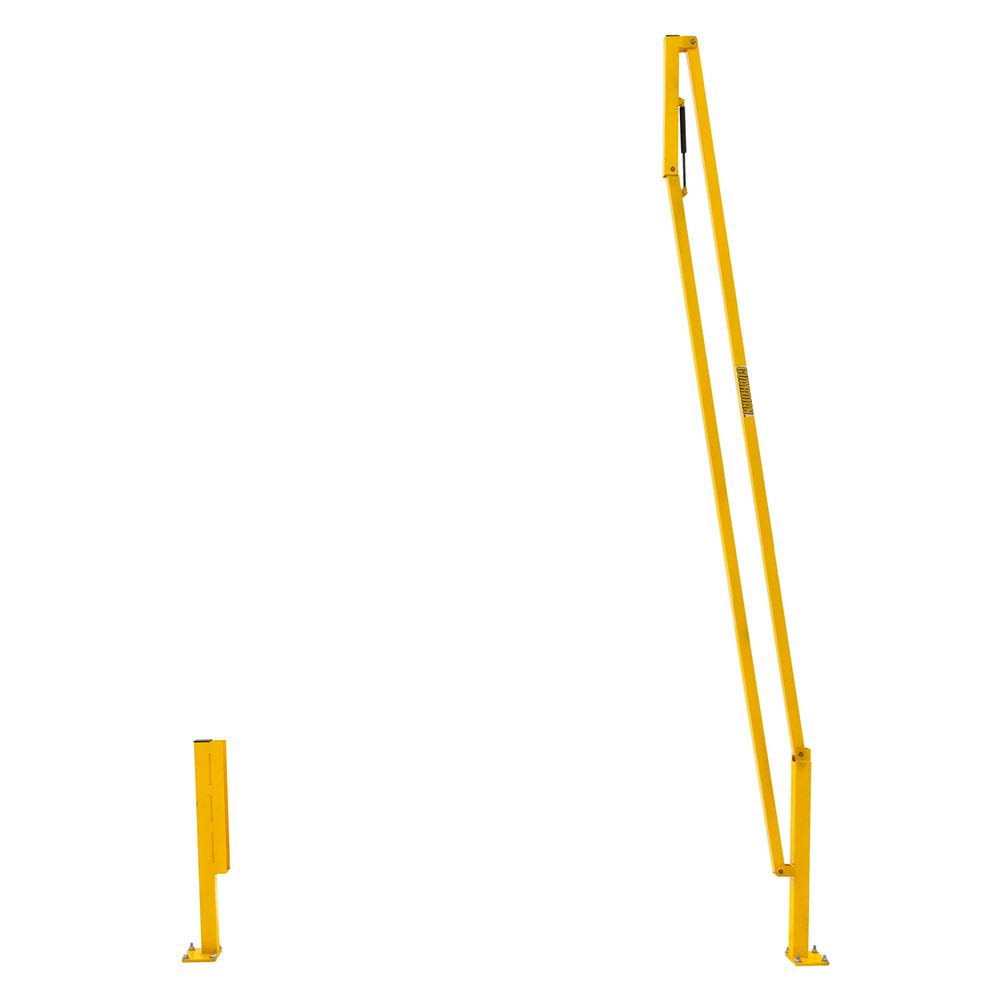 The 10′ W Guardian Door Dock Gate instantly alerts workers to open docks, bays and other exposed ledges with its high-vis yellow paint and red/white reflectors. The door dock gate has steel columns and a strong yet lightweight aluminum gate that is counterbalanced for single hand use. The gate lifts vertically to provide ample clearance when loading and unloading. When fully raised, the total height measures 14′ 7 inch.