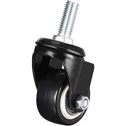 Wheel Dia: 40mm / 1.5inch ; Capacity: 50kg / 110lb per wheel ; Style: Swivel Thread Dia: 8mm / 0.31inch ; Thread Length: 25mm / 0.98inch; Wheel Material: Polyurethane Polyurethane (PU) wheels offer the elasticity of rubber wheels combined with the toughness and durability of metal wheels. Suitable for all floor types. Perfect casters for small equipment and small space furniture including coffee table, plant stands, Install Type: Threaded Stem ; Color: Black ; Package Content: 4pcs x Threaded Stem Caster Description: 4 Pcs 1.5 Inch Swivel Caster Wheels PU 360 Degree Threaded Stem Caster Wheel M8 x 25mm. Polyurethane (PU) wheels offer the elasticity of rubber wheels combined with the toughness and durability of metal wheels. Suitable for all floor types. Perfect casters for small equipment and small space furniture including coffee table, plant stands, bookshelves, shoe bins, toy bins, shopping carts, workbench. Note: Each caster capacity is 50kg, total capacity for all 4 casters is 150kg (calculated by 3 casters ). Because when the road is uneven, sometimes there will be only 3 casters bearing weight. Features: Wheel Dia: 40mm / 1.5inch. Capacity: 50kg / 110lb per wheel. Style : Swivel , Threaded Stem. Install Type: Threaded Stem. Thread Dia: 8mm / 0.31inch Thread Length: 25mm / 0.98inch Wheel Material: Polyurethane Color: Black Package Include: 4 x Threaded Stem Caster,4 x threaded embedded parts, 4 x nuts, ,1 x wrench.