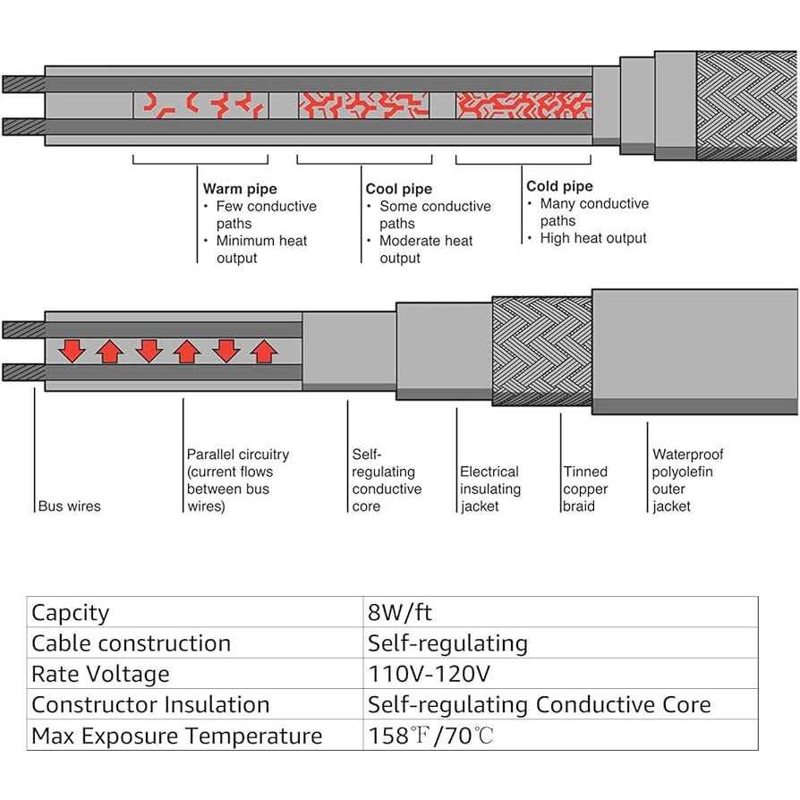 Used for Metal or plastic gutters/downspouts, Inclined roofs Roofs with noncombustible shingles. Suitable for all roof and gutter configurations. Heated wire for roof is a commercial-grade self-regulating heat cable that substantially outperforms cheap cables. Used for Metal or plastic gutters/downspouts, Inclined roofs Roofs with noncombustible shingles. Suitable for all roof and gutter configurations. Heated wire for roof is a commercial-grade self-regulating heat cable that substantially outperforms cheap cables. Used for Metal or plastic gutters/downspouts, Inclined roofs Roofs with noncombustible shingles. Suitable for all roof and gutter configurations. Heated wire for roof is a commercial-grade self-regulating heat cable that substantially outperforms cheap cables.”