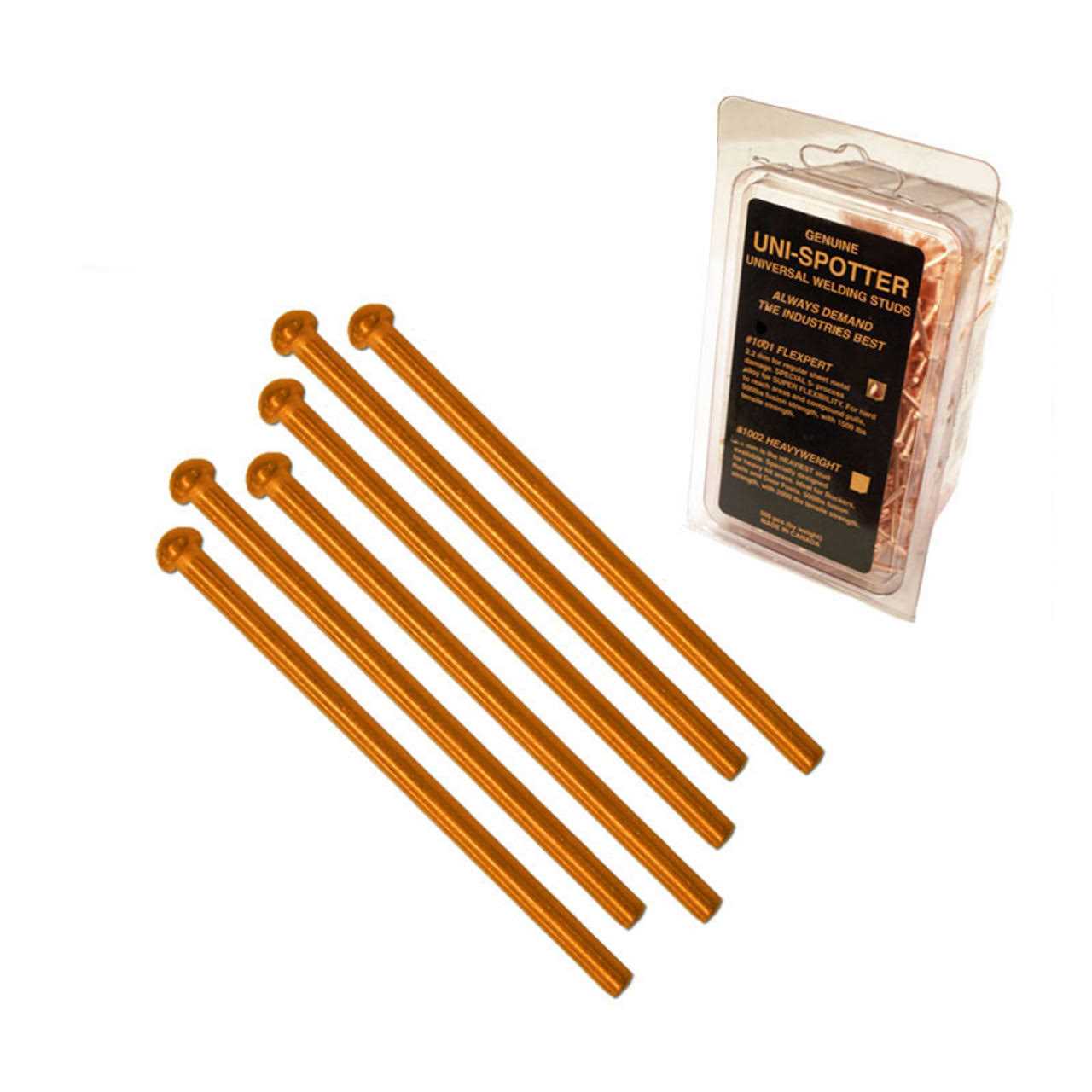 The H&S Autoshot HSAUNI-1001 steel stud works well on any automotive steel requiring stud welding as part of the repair. This unique design allows for superior welding on the newer high strength lightweight steel, common in today’s collision repair market. The new tip design allows for a stronger and easier weld process. The 1001 Flexpert Welding Studs are the most popular stud sold today. They are 2.2 mm, copper coated, and specially designed for easy welding and easy removal after the pulling is complete. The shafts are strong, yet flexible. This is the preferred stud for use with slide hammers.