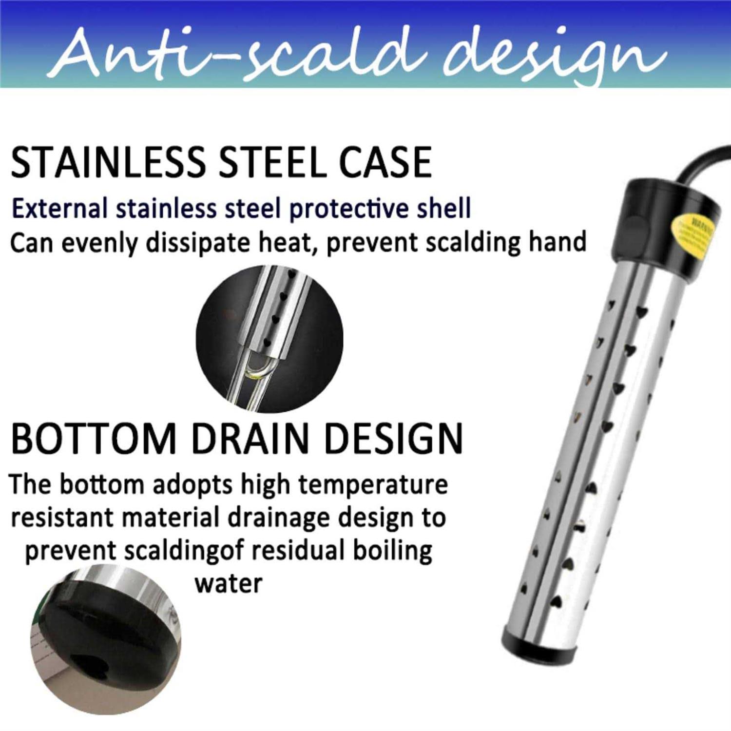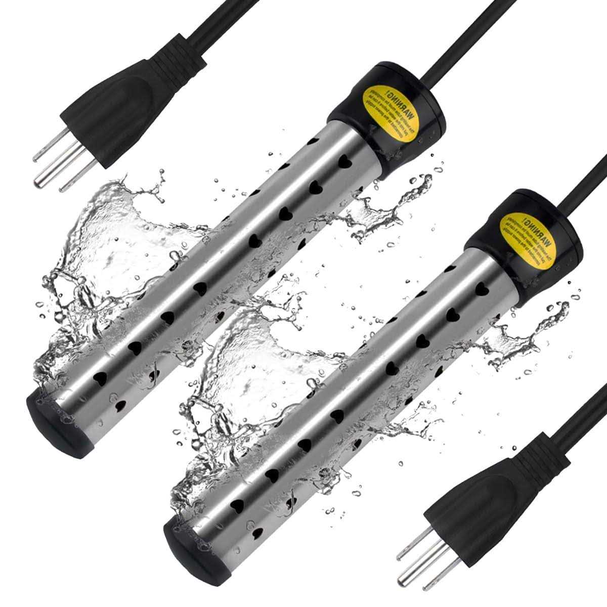 Fast Heating: Immersion heater can heat up to 5 gallons of water in just minutes,this will help you save waiting time. Protection against scalding: Made with a durable 304 stainless steel protective cover,this prevents direct contact with the heating element and protects you from burns. Built-In Thermostat: The thermostat design allows the water heater to automatically power off when heated to approximately 167 °F and reheat when the water temperature cools to 122 °F, which can help you reduce energy waste. Portable and Easy to Use: Our immersion heater is easy to use and can be taken with you anywhere you go, making it perfect for use in bucket, inflatable pools, hot tubs, and more. Warning – Please make sure that water heater electric is completely immersed in the water. Do not use it for more than 3 hours continuously! Do not plug two pool heaters into the same outlet to avoid fire hazards! Are you looking for a safe and fast-heating pool heater for above ground pool? If yes, Our Immersion Water Heater might be a good choice. Security Protector Case The anti-rust stainless steel guard aims to keep you away from directly contact the heating elements, which adds the max protection to prevent accident injures Fast Heating 1500W high power water heater aims to reduce the heating time to save your time. Three times faster heating than other water heaters, practical and efficiency Features and Benefits – High quality stainless steel, safe and durable – Widely application, suitable for winter work Specifications – Power: 1500W – Applicable Voltage: 110V – Wire Length: 150cm (59 in) – Heating Parts: 25cm (9.9 in) – Color: Black