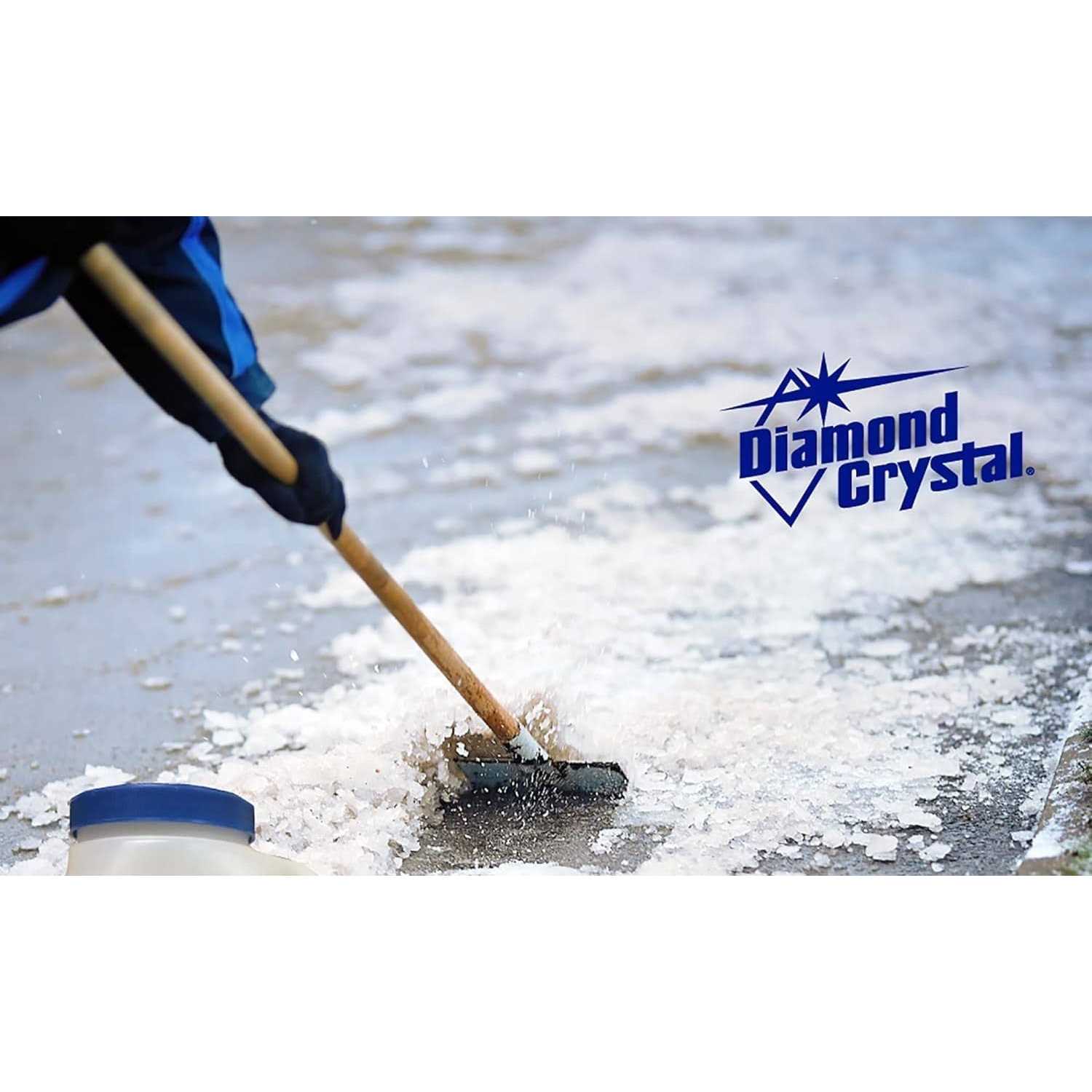 Available for de-icing as irregularly shaped grey-white sodium chloride crystals. Does not chemically attack concrete. Leaves a white, powdery residue when it dries. Slower than calcium chloride and faster than potassium chloride. Used as recommended, safe to handle and will not harm vegetation. Works from +5 degree – +12 degree F.