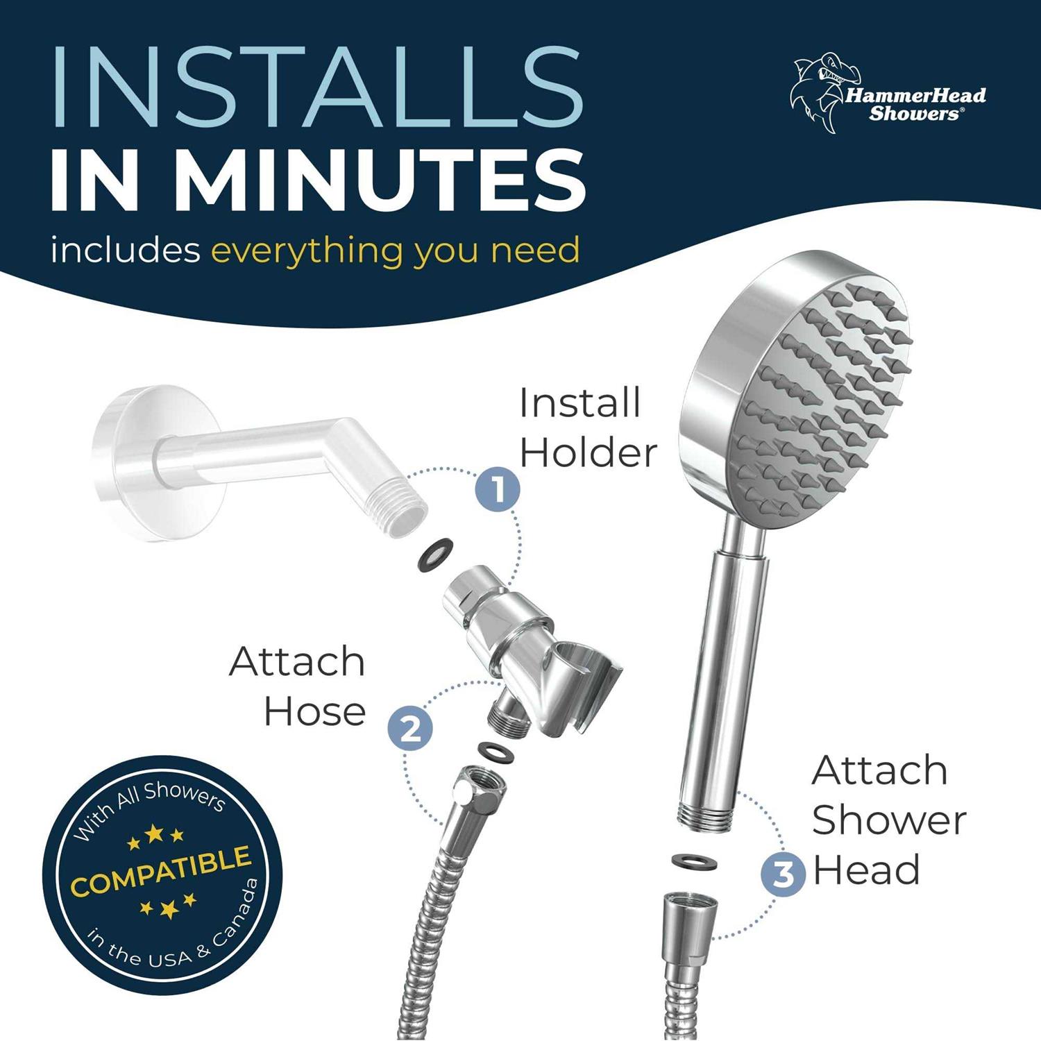 Be the first to review “HammerHead Showers All Metal Handheld Shower Head with Hose and Brass Holder Chrome”