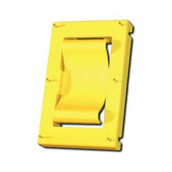 Use to quickly mark the precise cutout location for outlet boxes when installing drywall. No measuring required. Works with standard multigang plastic outlet boxes with receptacles out or in. Constructed of tough ABS plastic and stainless steel pins. Can be reused.