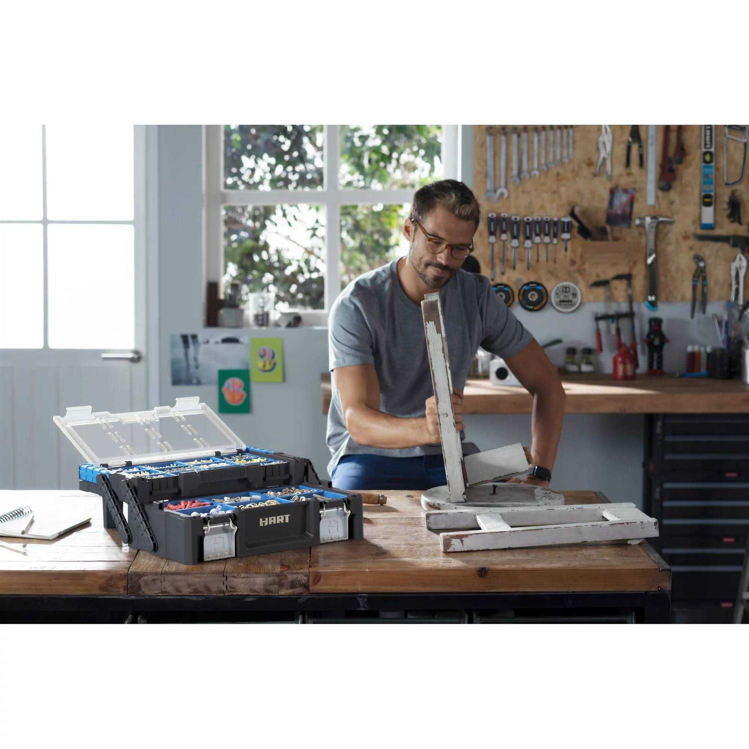 HART 18 Cantilever Organizer Resin Tool Box for Small Tools and Parts Tool Storage and Organizaion