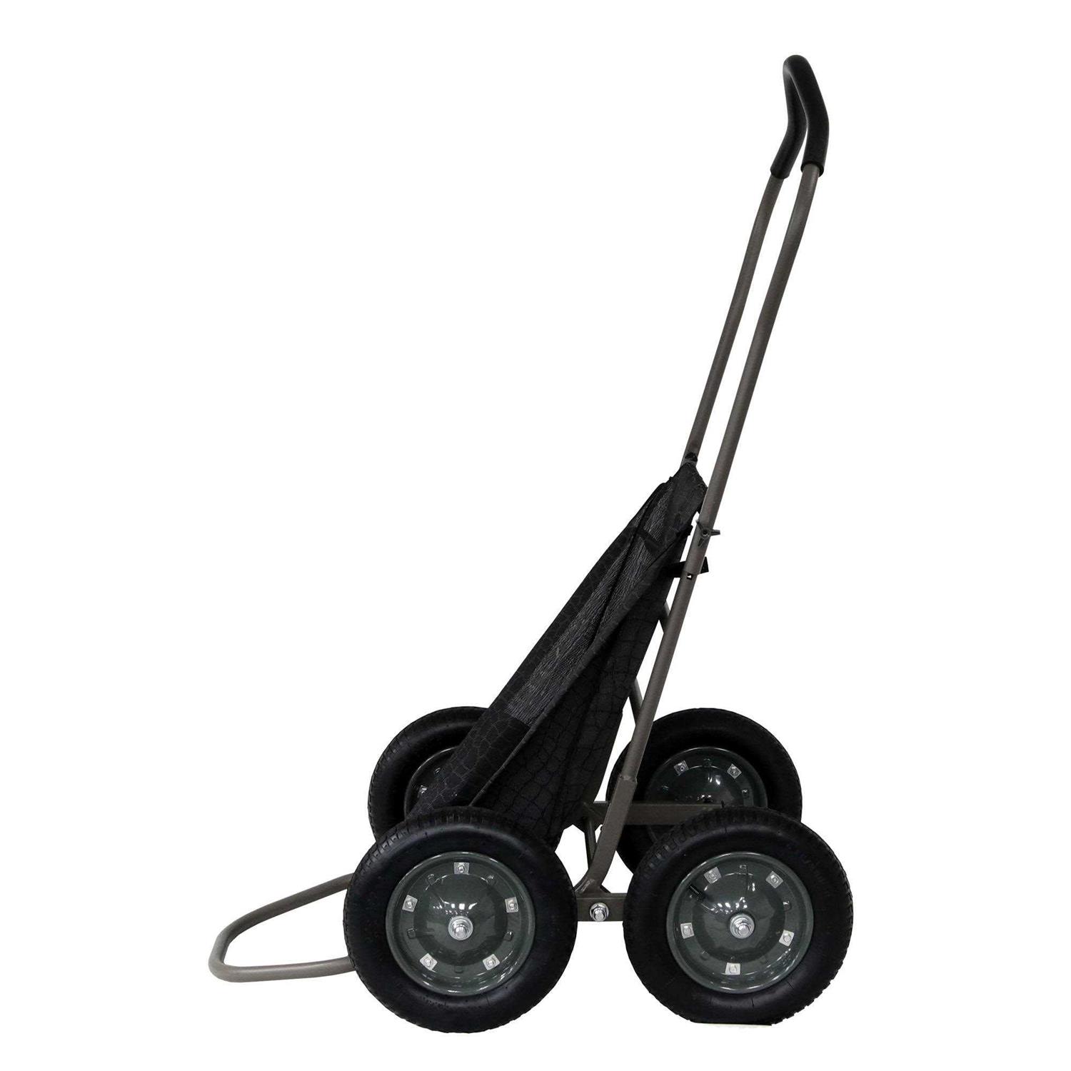 Haul the heaviest of loads with ease with the HAWK Crawler 500 lbs. The Crawler Deer Cart brings an amazing level of strength, stability and versatility. Patent Pending Dual Rotating Axles allow cart to crawl over top of objects in its way. 4 all-terrain tires and oversized tubing result in ultimate balance and weight management. The tires do all of the moving with uneven terrain which keeps the weight in the center of the cart stabilized, prevents shifting and ‘tipping’ and ultimately results in a smooth pull. Textilene DuraMesh sling adds versatility for hauling bait, firewood and other heavy loads. Handle and cart conveniently fold for easy storage and transportation. This cart comes with instructions for easy assembly. Easily haul game, gear or large loads wherever you need with the 500 lbs.