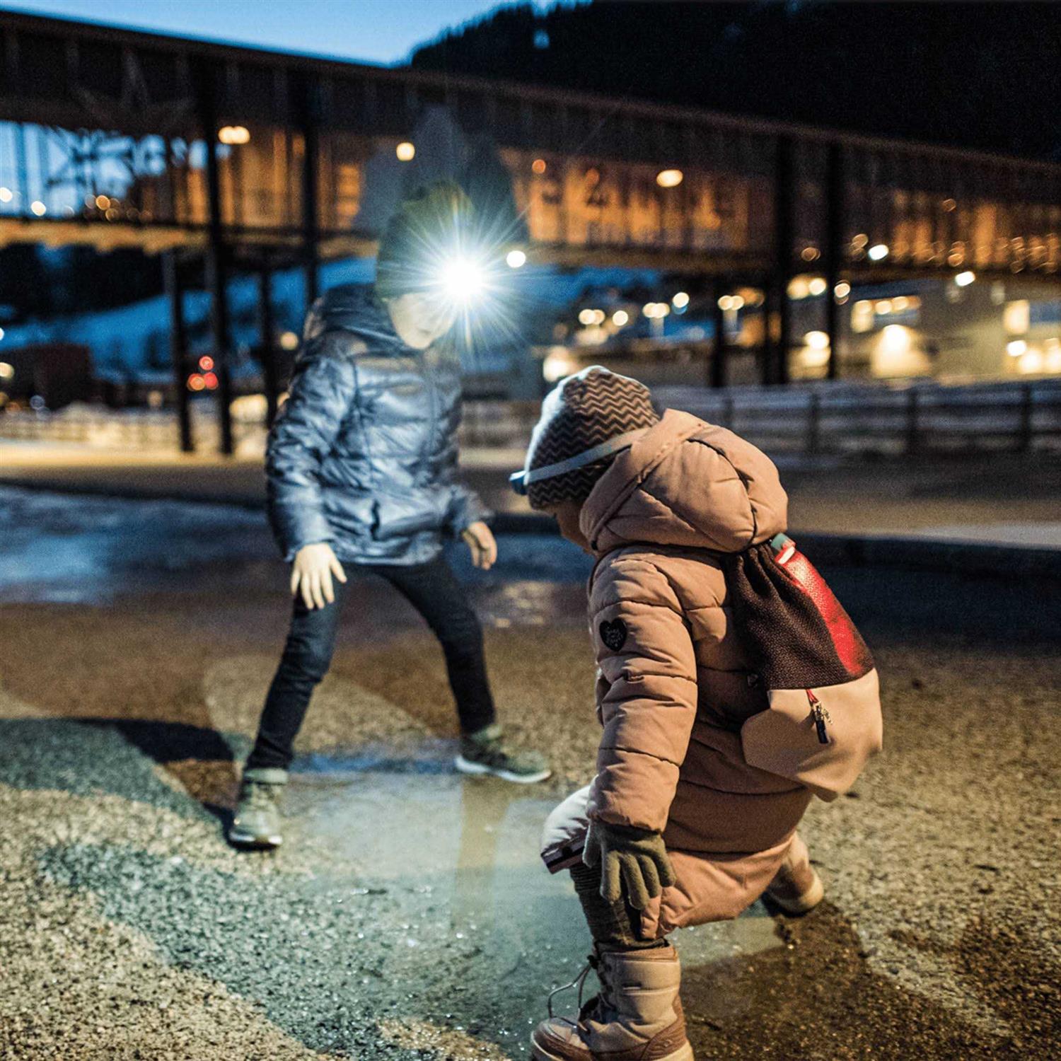 A diffused headlamp designed specifically for kids and young adventurers from LED Lenser. Little adventurers love to explore, but when nights close in sometimes they require a bit of illumination to lift the spirit of exploration. The Kidled4R a compact child-friendly light, specifically designed for young explorers. The child-friendly beam highly diffused to not damage their eyes when running around the darkness. The modest 40 Lumens output provides ample illumination for night walks while the low 5 lumens mode for reading books under the bedcovers. To add a bit of flair to the beam the torch features an additional blue and red light perfect for signalling to the teddy bear on the bookshelf. Being rechargeable means the light doesnt break explorers sponsors bank accounts as they go galavanting into the night. For safety not only does the Kidled4R feature a highly diffused beam, to avoid strangulation the torch features an auto realise band thus preventing the torch from getting caught on an adventurers neck. The Led Lenser Kidled4R the perfect childrens torch. Ideal for those looking to explore the darkness, in the house, at camp or to provide visibility on the walk to school .