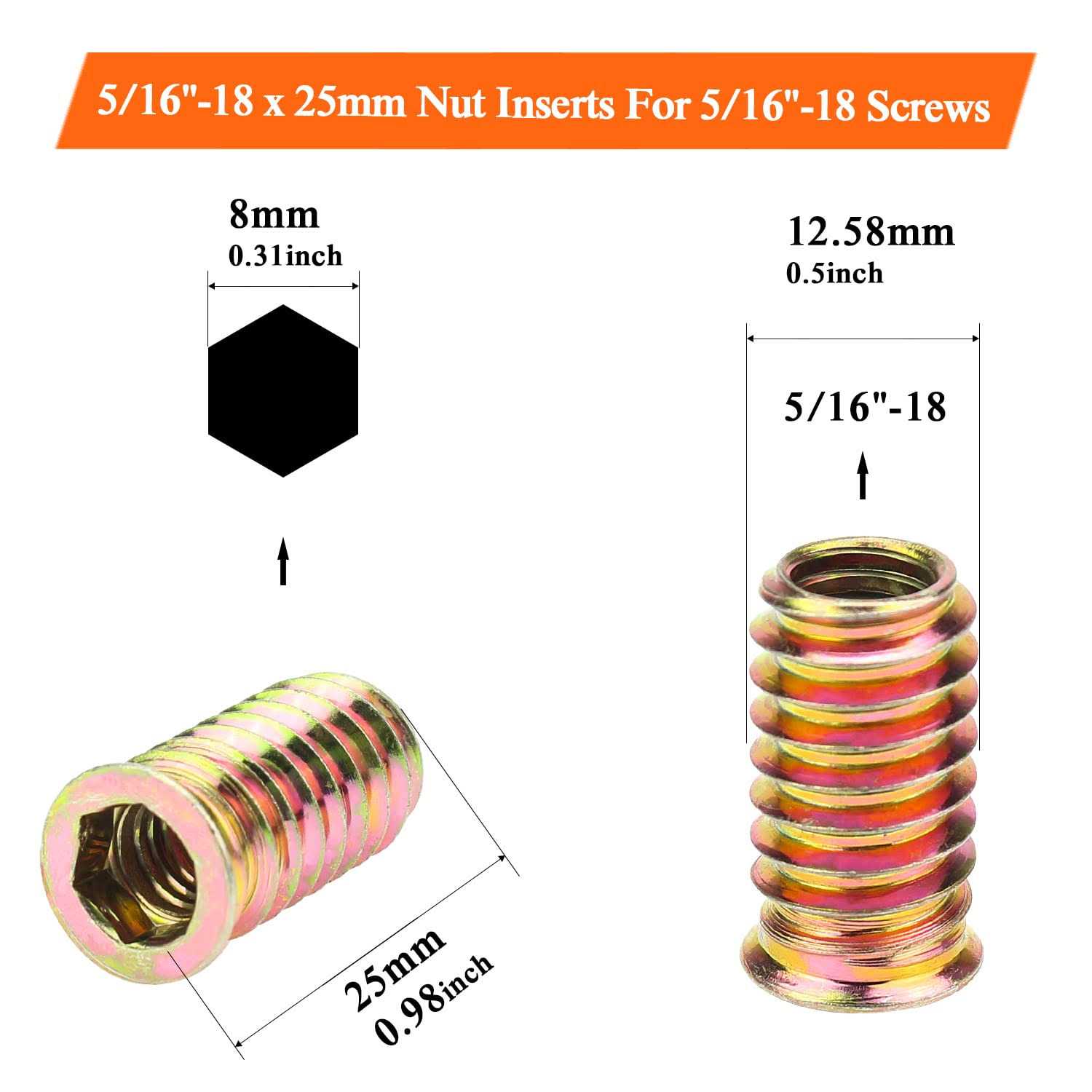- Type: 5/16-18 Wood Threaded Inserts br