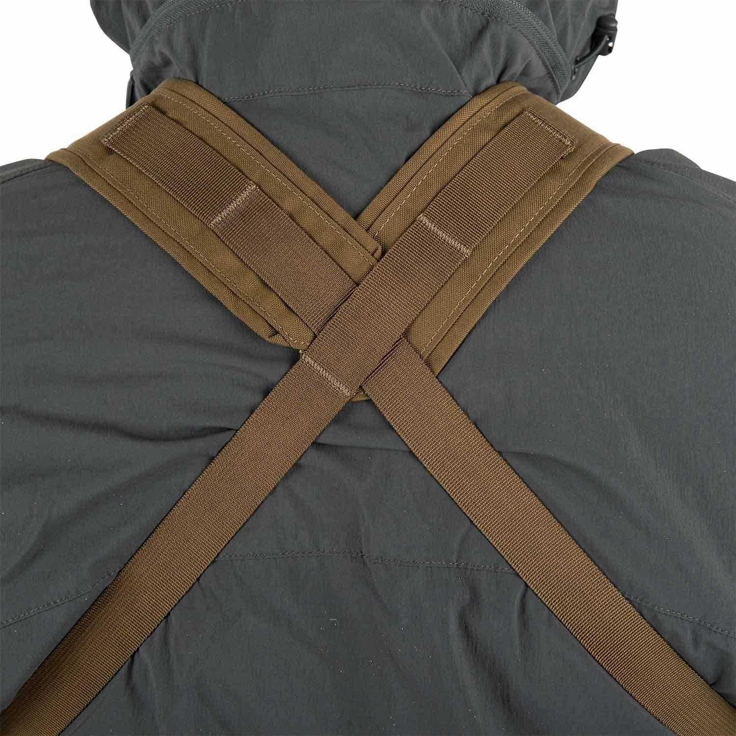 - Universal, removable, adjustable X- or H-harness. Channels on straps for wiring, antenna, hydration tubes etc.