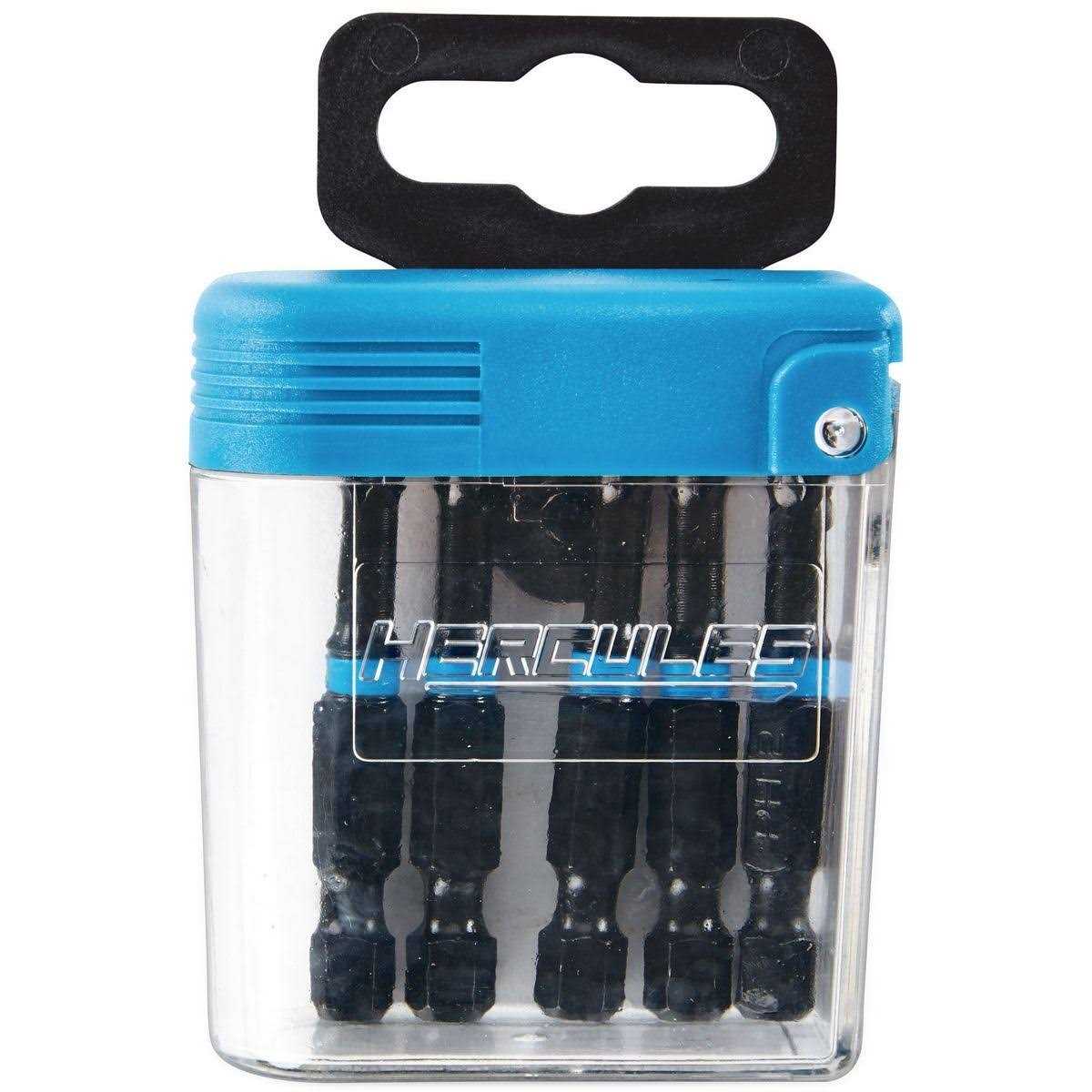 HERCULES Impact Rated Insert Bits use exclusive BitFit technology to provide exceptional fit and reduce stripping. The TorqPoint Impact Shock Absorbent Zone stands up to punishment from high-torque impact drivers. Packed in a handy dispenser pack.