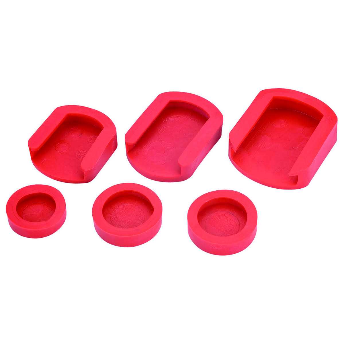Soft, durable PVC jaw pads prevent marring of work material Fit 3”, 4”, and 6” standard C-clamps Three pair each size Soft PVC (polyvinyl-chloride) plastic Jaw Pads prevent hard metal clamps from marring work piece. They can be used on various size C-clamps. The Jaw Pads are designed for standard 3 inch, 4 inch and 6 inch jaw width C-clamps. There are two pair of each of the three sizes (a total of 12 pieces). The PVC color is a bright red throughout.