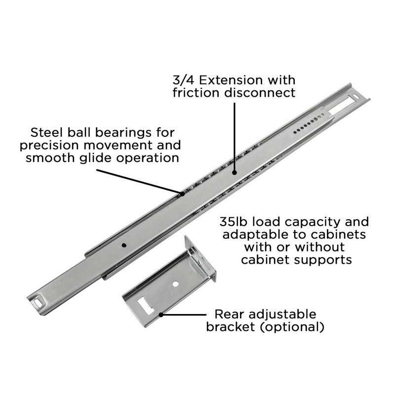 - Provides easy access to the drawer with 3/4 extension slides