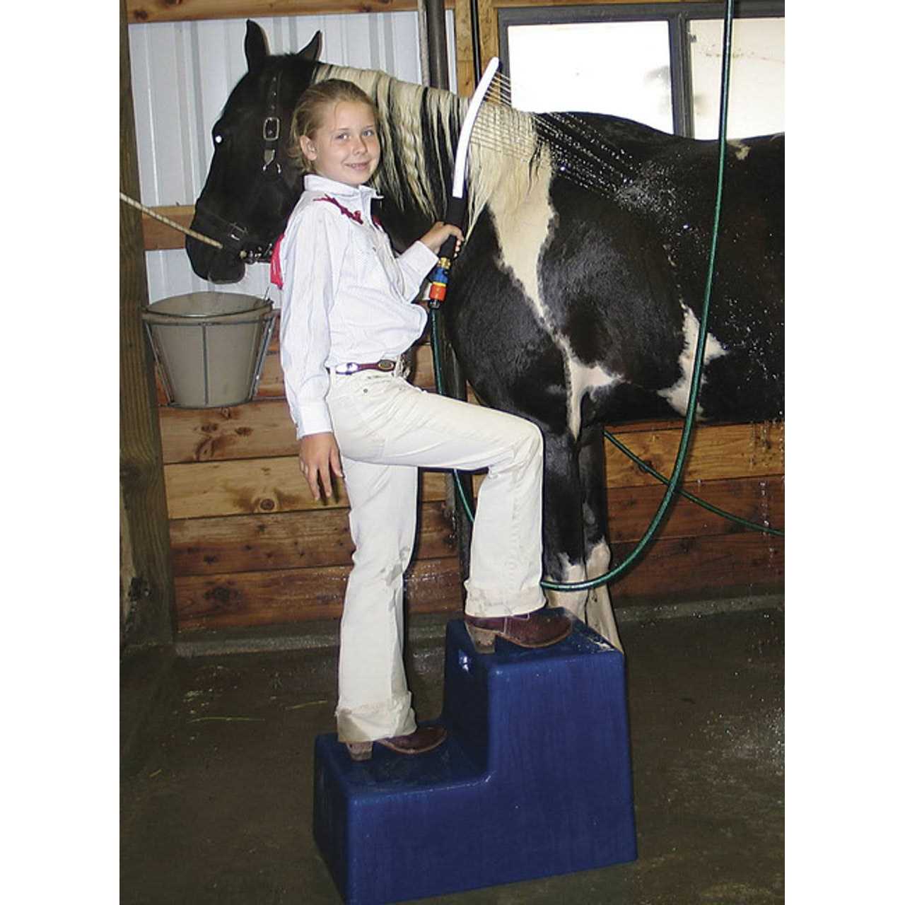 High Country Plastics 2 Step Mounting Step Blue 19″H – MS-19B From the barn to the pasture in your home and your garage High Country Steps are useful for multiple tasks. Safely mount or groom your horse step in and out of your trailer or RV with ease and easily access hard to reach items. Our Two Step Mounting Block has a 19″ overall height and wide sturdy base. At only 14 lbs. it’s light enough for kids to move around. All steps feature a convenient carrying handle and window cut out for storage.