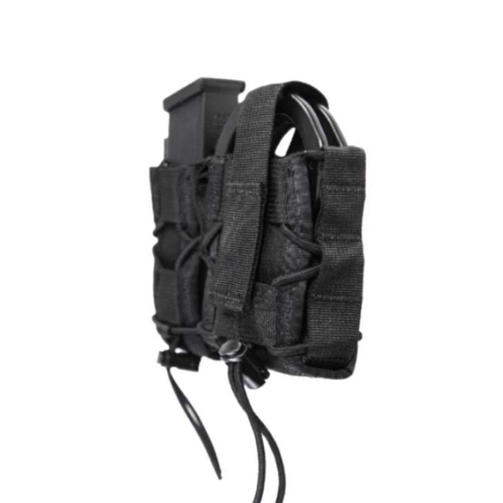 This open-top combination of our Pistol TACO and Handcuff TACO will hold almost any combination of pistol magazines, small flashlights, multitools, handcuffs, field compasses or tins.