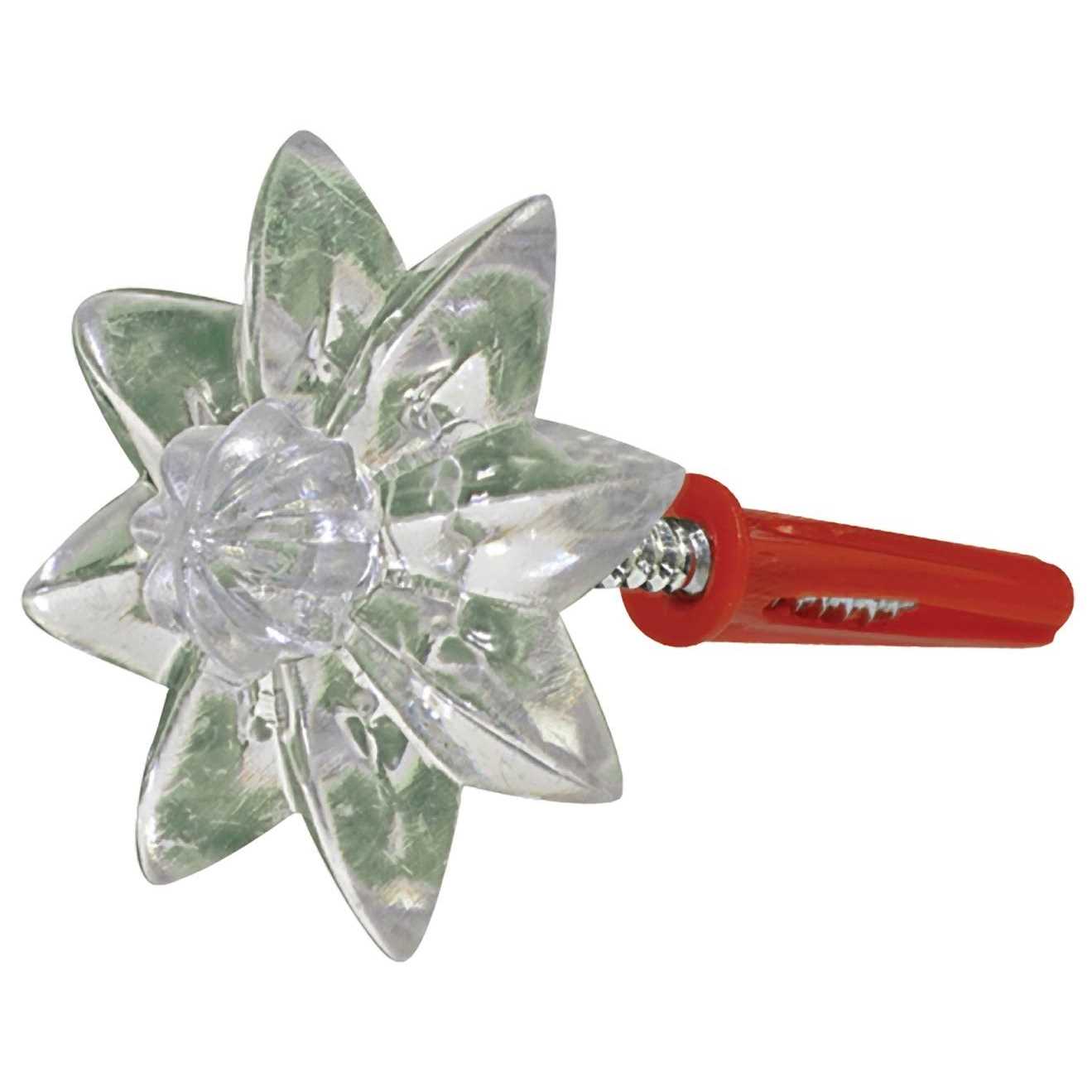 Acrylic Rossette heavy duty mirror/picture holders with 6 x 1 1/4 Oval Philips Wood Screw included. For through hole installation. Rossette design, 4 acrylic buds. One piece design. Easy to install. Acrylic Rossette heavy duty mirror/picture holders with 6 x 1 1/4 Oval Philips Wood Screw included. For through hole installation. Rossette design, 4 acrylic buds. One piece design. Easy to install.