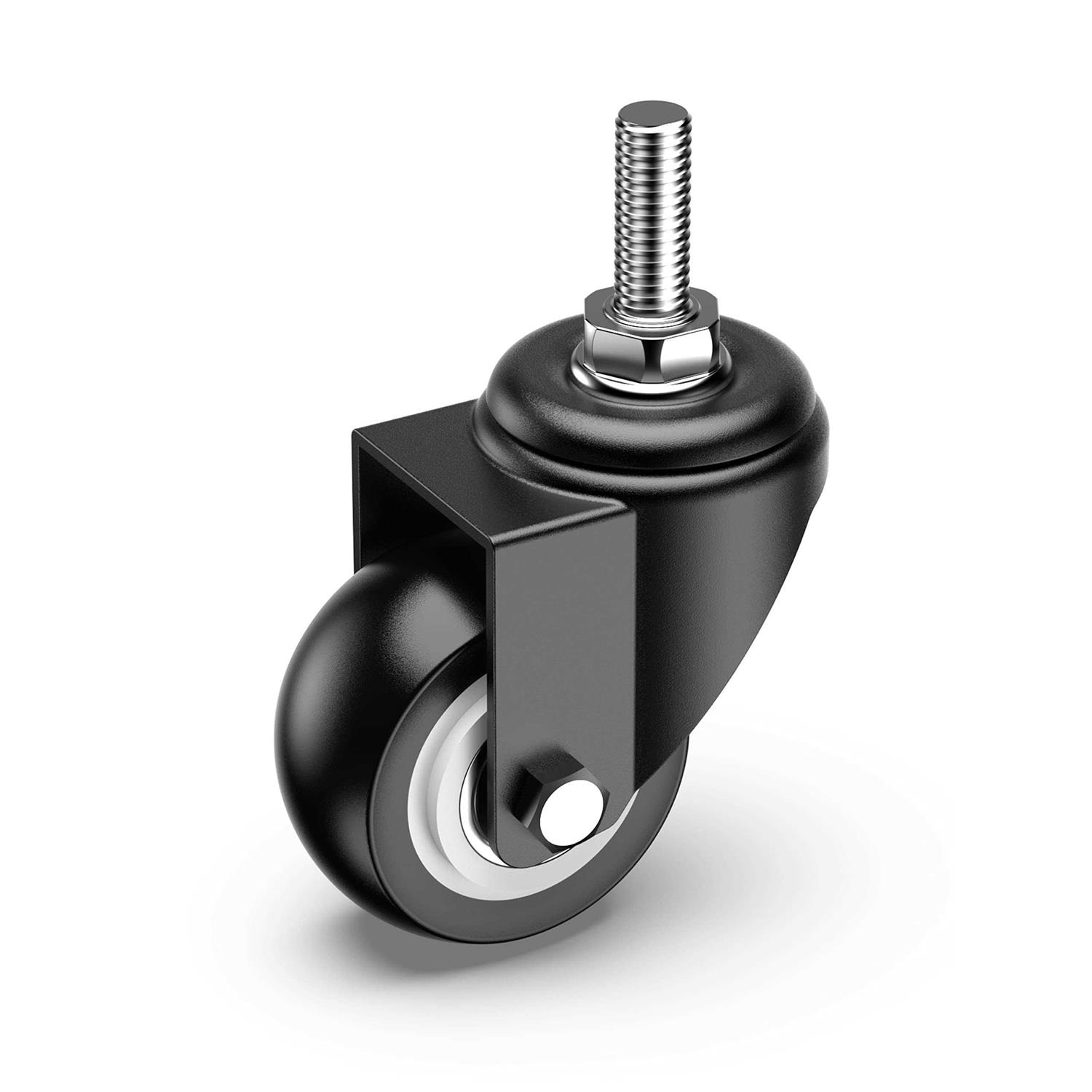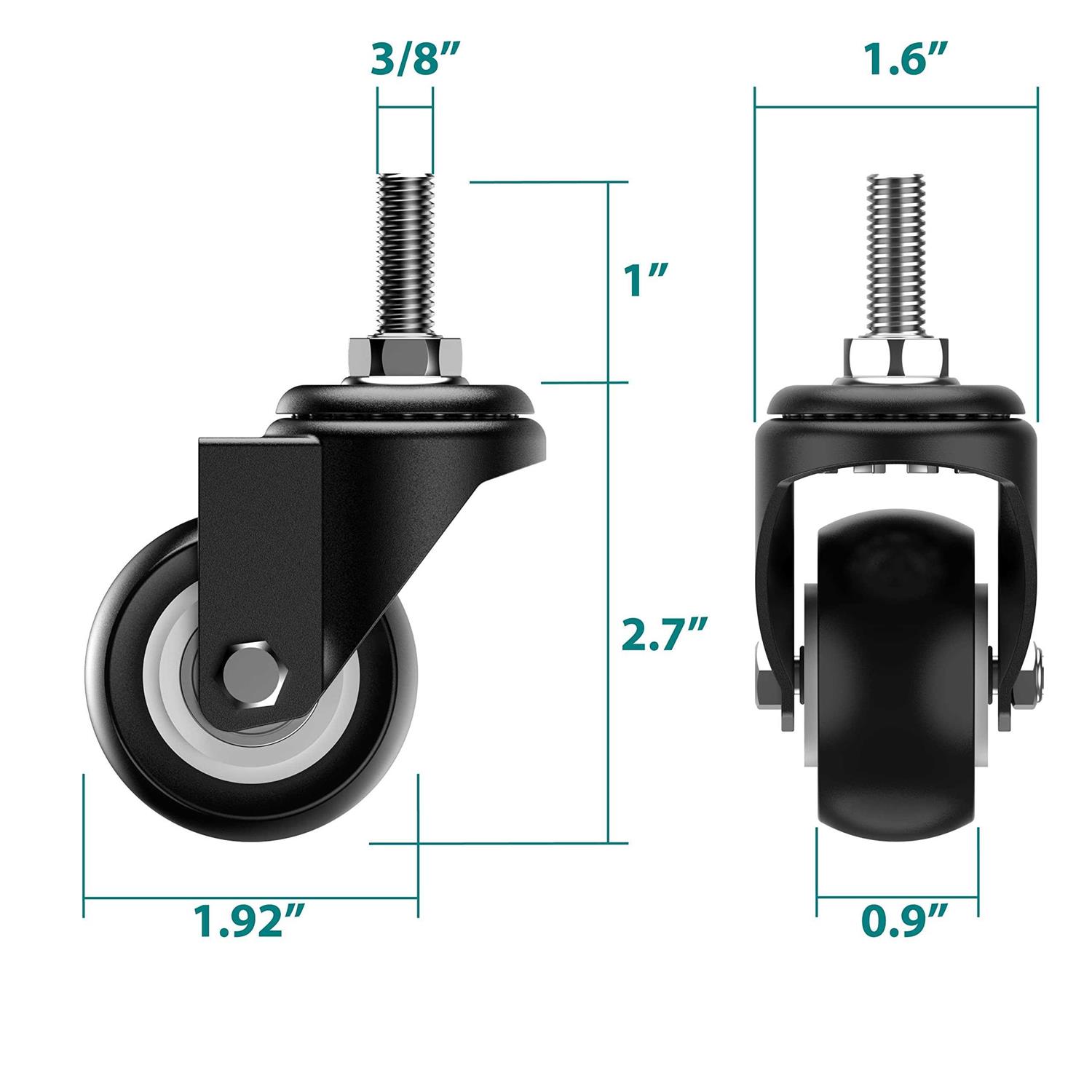 HOLKIE Caster Wheels 2 inch with No Brake Stem Casters, 3/8″ -16 x 1″ (Stem Diameter 3/8″, Stem Length 1″) Threaded Swivel Casters Set of 4 Heavy