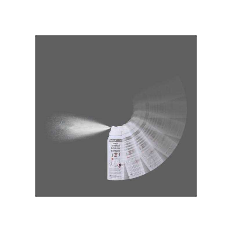 Adapt medical adhesive remover spray with its silicone-based, alcohol-free formulation delivers an efficient solution for barrier removal without the sting caused by alcohol. IT features an innovative 360-degree spray technology to deliver controlled, quiet spraying from any angle, with minimal waste. Contains no CFCs. Latex-free.