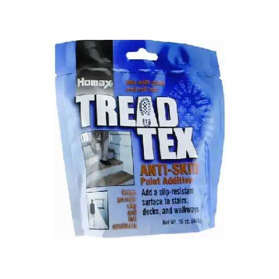 Tread-Tex Anti-Skid Paint Additive is a fine aggregate material that can be added to any floor paint to provide a skid-resistant surface. When painting, add skid-resistant safety to stairs, decks, docks, and more. Tread-Tex can be used on interior or exterior surfaces where slipping is likely to occur. The 16 oz. bag mixes with one gallon of paint.