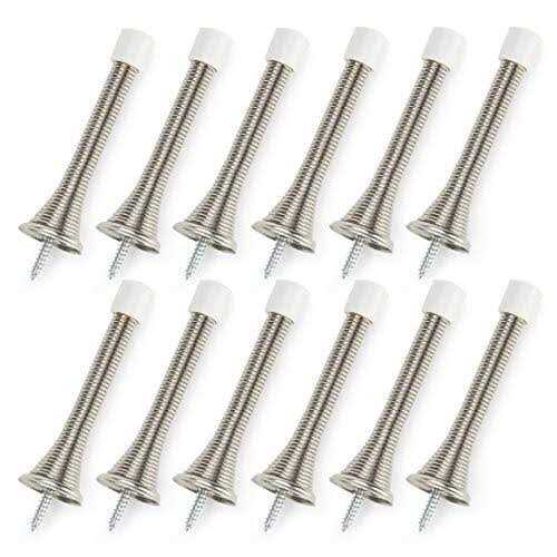 HOMOTEK 12 Pack Spring Door Stopper with Rubber Bumper 3-1/8 Flexible Spring Heavy Duty Wall Door Stop Low Mounted Door Bumper for Home