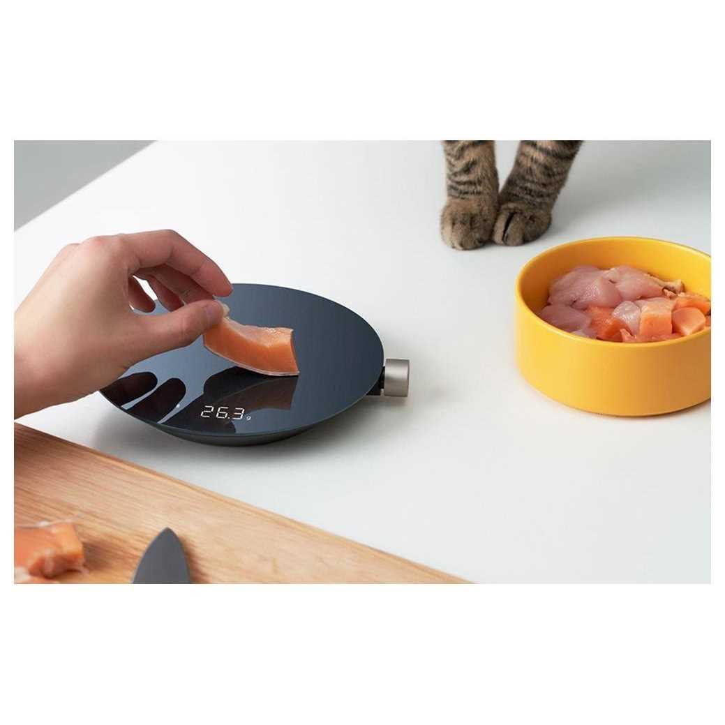 • Hoto Smart -keittiövaa”an kestävän karkaistun lasin alla on integroitu näyttö, jossa elintarvikkeiden aten näkyy selvästi.