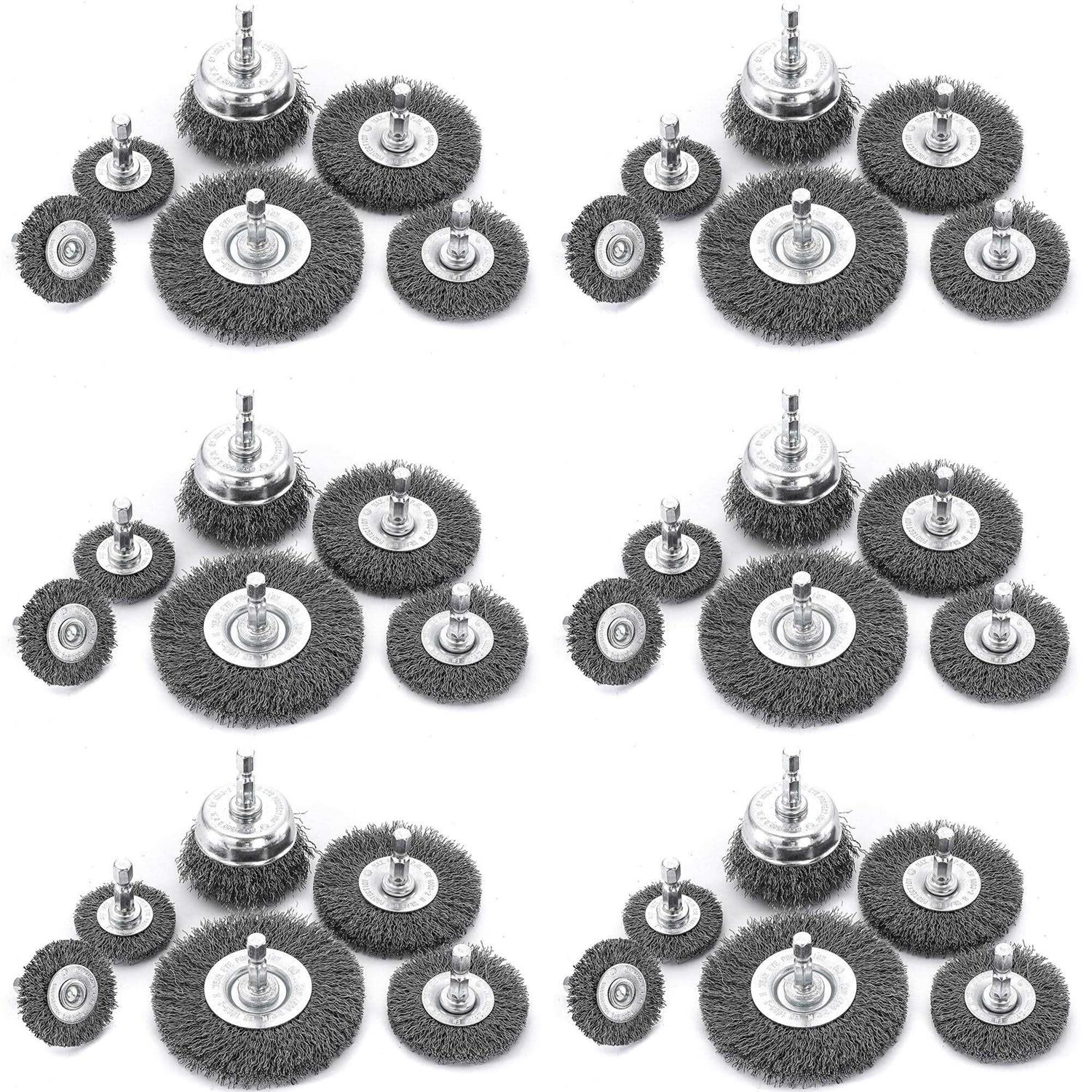 HOYIN-18PC(3PACK 6Piece) Wire Wheel Cup Brush Set|Coarse Crimped Carbon Steel|1/4In Hex Shank|for Drill