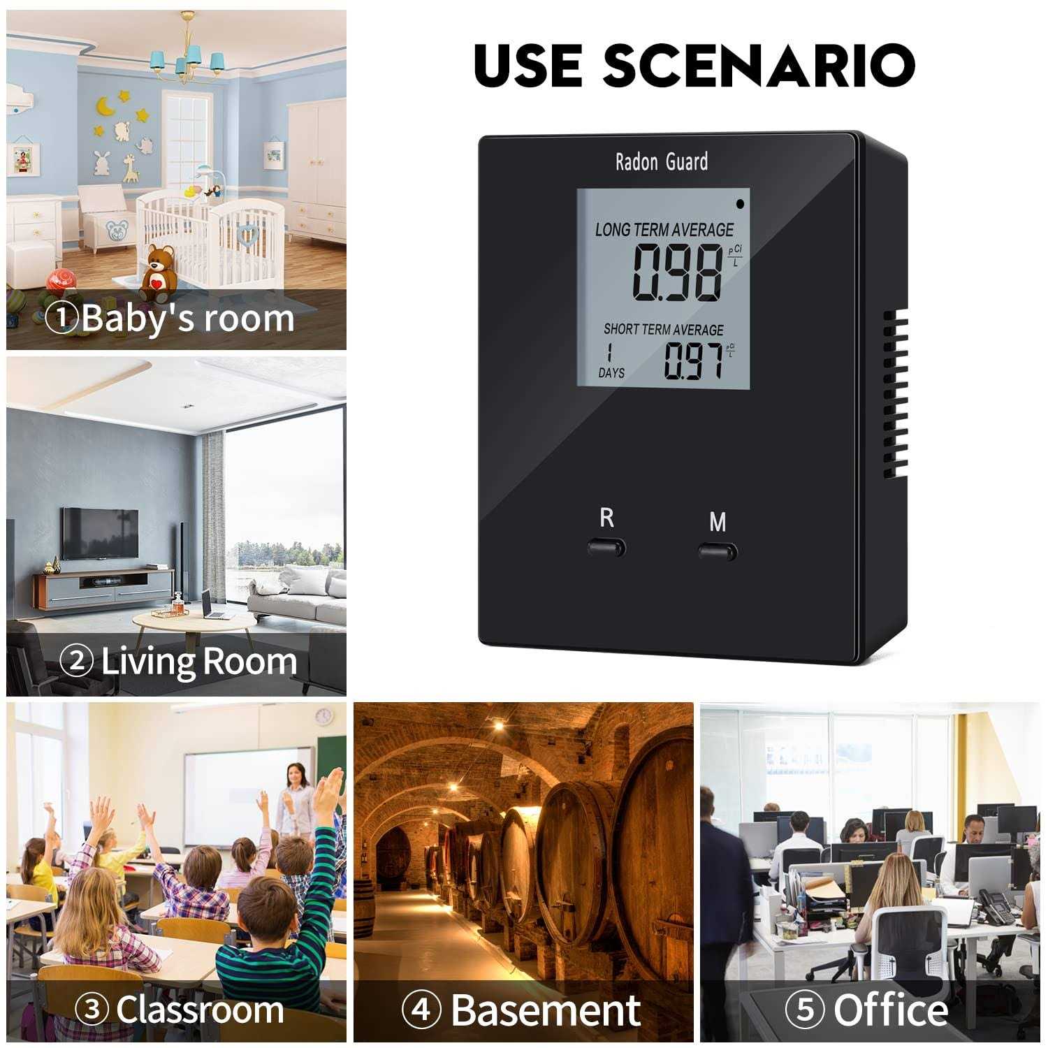 Do you want to know if your home have too much radon? Long term monitoring is necessary as radon levels fluctuate daily, to help you take more effective measures to prevent radon exceedance BE IN CONTROL: On-screen results show both long and short term readings, take action if your radon levels are high. It can be easily detected from room to room without needing to be recharged, making it easy to detect radon gas in your home, office, school, basement, or anywhere else KEEP HEALTH: Your home could be susceptible to a radon problem, so radon gas detector is required in every family because there is no guarantee that radon levels in your home will be lower than 2pCi/L. Especially in the family of infants, the elderly, pregnant women or sensitive people Is your family safe from Radon? Is your family safe from Radon? Although radon gas cannot be seen, smelled, or tasted, it is still possible for individuals to be exposed to harmful levels of it in their homes. Approximately 21,000 deaths per year in the United States are linked to radon gas. It is estimated that one out of every 15 homes in the US has levels of radon that are considered to be dangerous (over 4 pCi/L). Detection of radon gas is important. Remember to monitor radon daily so that you can make small adjustments to improve the quality of your air Specification: Sampling Method: Passive radon diffusion chamber Detection Method: Alpha spectrometry Power Supply: Rechargeable battery Operation Environment Temperature: 32 ~ 104°F Relative Humidity: <85% Measurement Range: 0 - 9999 pCi/L Accuracy: 5% ± 0.14 pCi/L