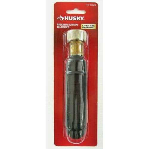 The Husky Medium Drain Bladder helps clear 1.5 in. to 3 in. drains by expanding in the drain and forcing water pressure through the clog. The bladder is designed for use with garden hoses.