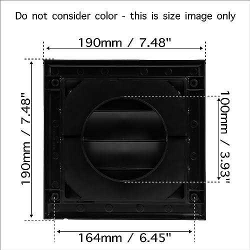 HVAC Ov Ø4″ inch Black Square Exhaust Vent Cover – Louvered Dryer Duct Vent Cover – Vent Hood with Shutters – one-directional Plastic Air Grille –