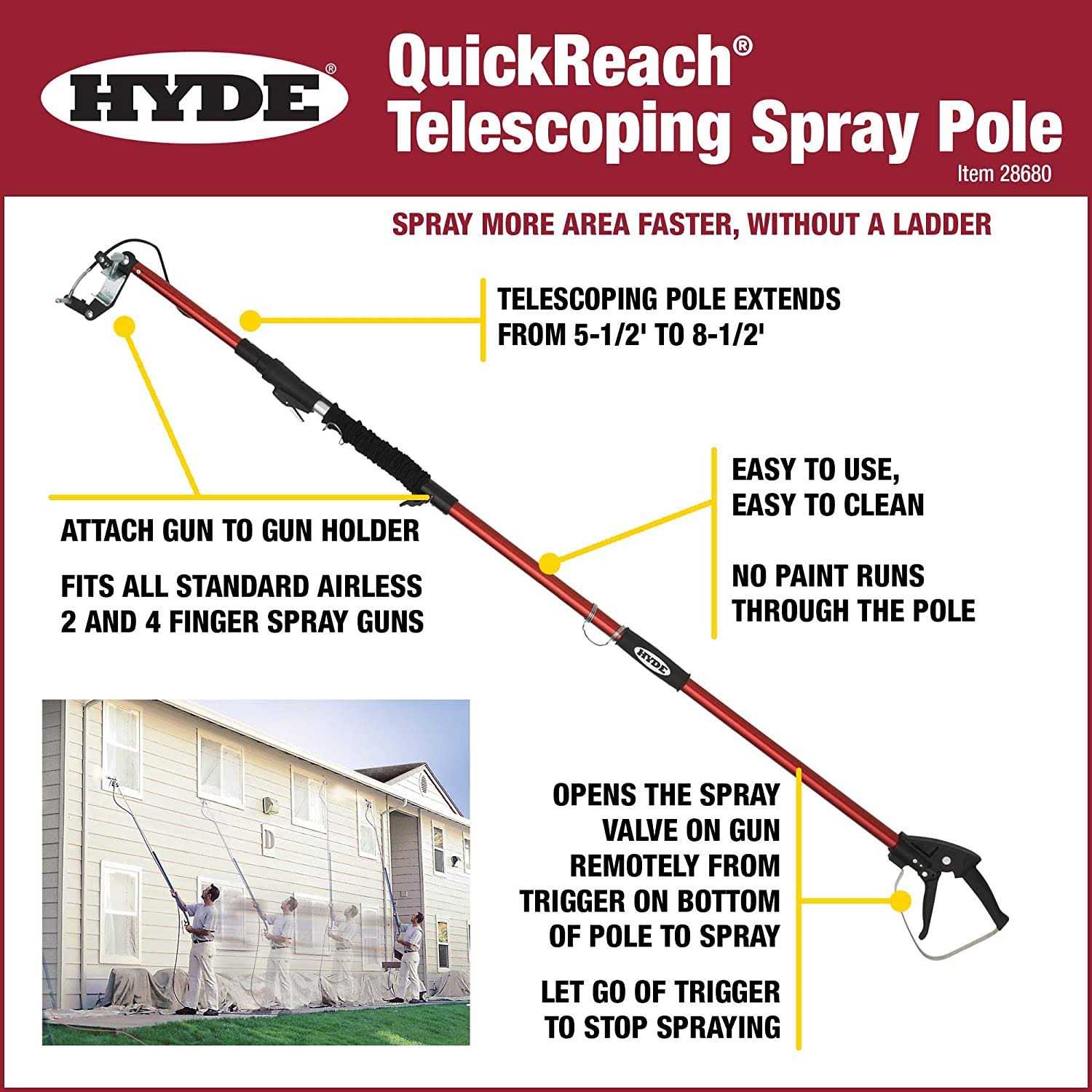 Forget about difficult ladder placements. Now you can extend your reach from 12 square feet to 212 square feet from a single standing position. Perfect for painting stairwells, dormers, ductwork, steel beams, truss work, ceilings and expansive surfaces. Telescoping lengths will allow you to adjust pole length quickly and easily for each job or each painting position. Quick release lever also lets you switch from extension mount to handheld gun in an instant. Easy to use and easy to clean, since paint does not pass through the anodized aluminum pole.