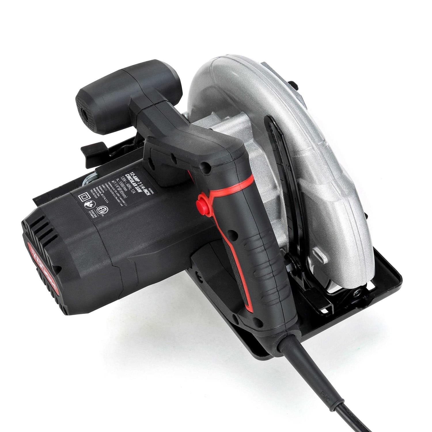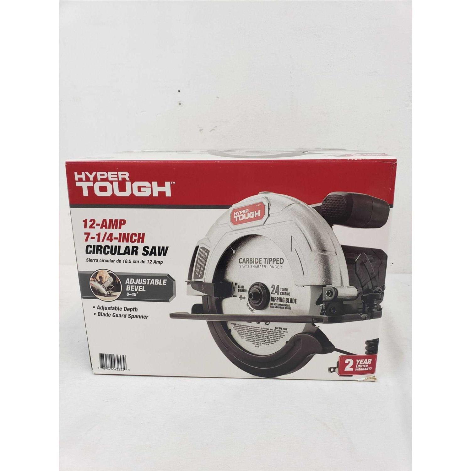 - Hyper Tough 12 AMP Corded 7-1/4 inch Circular Saw with Steel Plate Shoe, Adjustable Bevel, Blade & Rip Fence