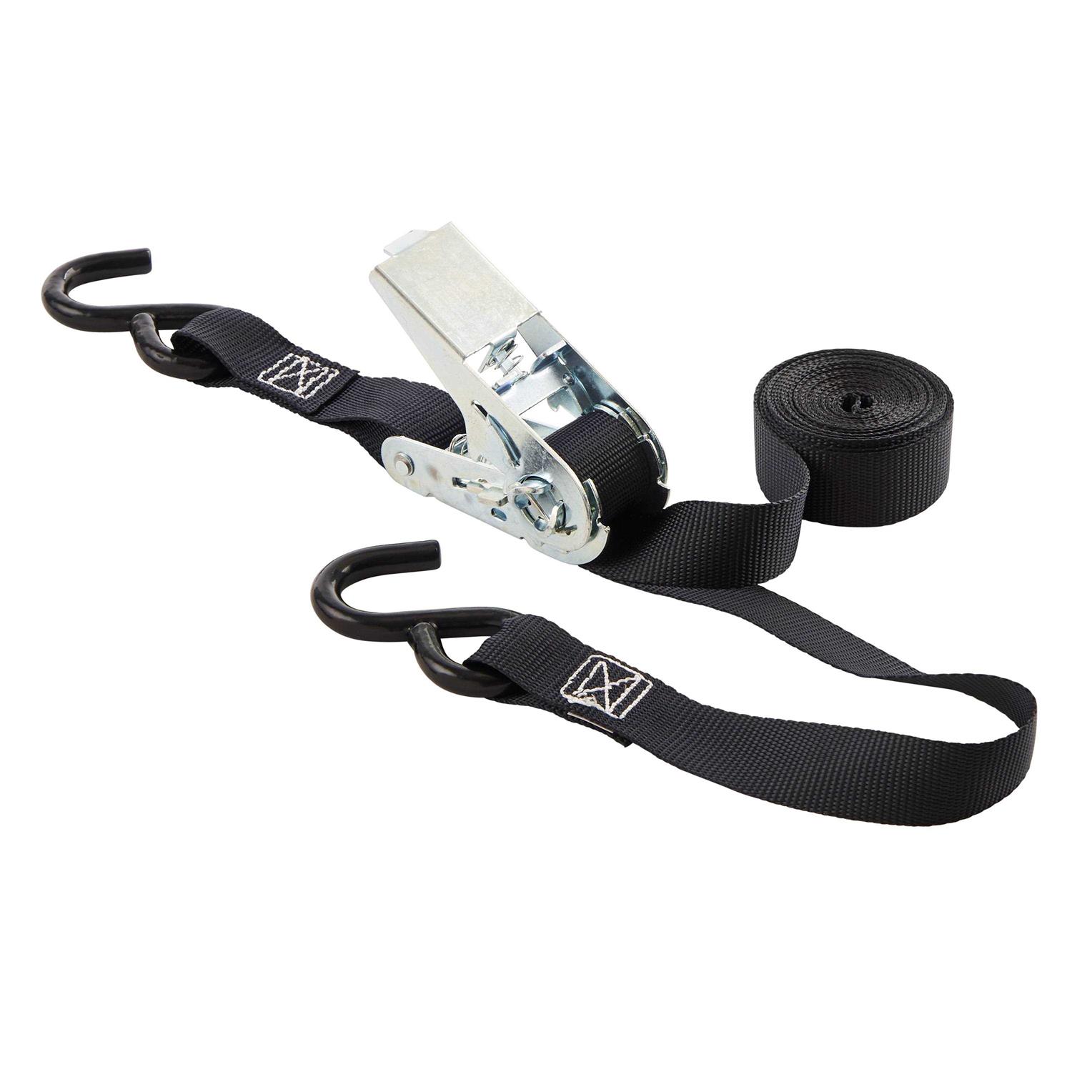 Keep heavy or bulky cargo safely secured during transportation with the Hyper Tough 12′ x 1 inch Ratchet Tie-Down. The ratchet tie-down features a high quality, durable, black nylon abrasion-resistant 1 inch webbing to absorb shock and a steel ratchet buckle for a tight and secure hold. The ratchet buckle is designed with a rotating gear and lever mechanism latch to tighten and secure your load. The tie-down is compact, portable, and easy to use. It has a working load limit of 500 lbs. and 1,500 lbs. break strength to deliver optimal performance. The Hyper Tough Ratchet Tie-Down is ideal for securing large furniture and appliances, sports vehicles, and much more.