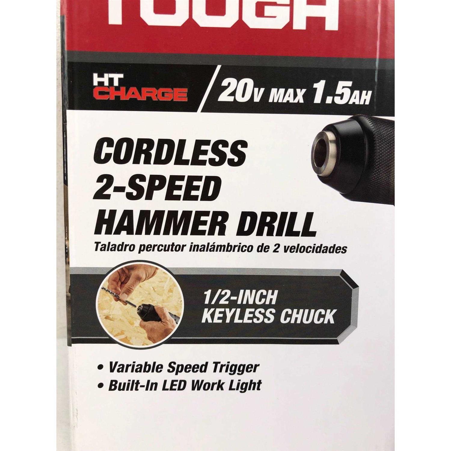 The 1/2 inch chuck is a ratcheting chuck so please make sure for proper use to insert and center bit and tighten chuck until clicking stops. This 2-speed Hammer Drill provides the power for a variety of applications in wood and masonry. The long lasting lithium ion battery delivers dependable power throughout its charge, and with extended shelf life and fade-free power, it’s ready when you need it. When you are ready to make home improvement repairs or tackle those home improvement projects, Hyper Tough is ready. Hyper Tough gets the job done!