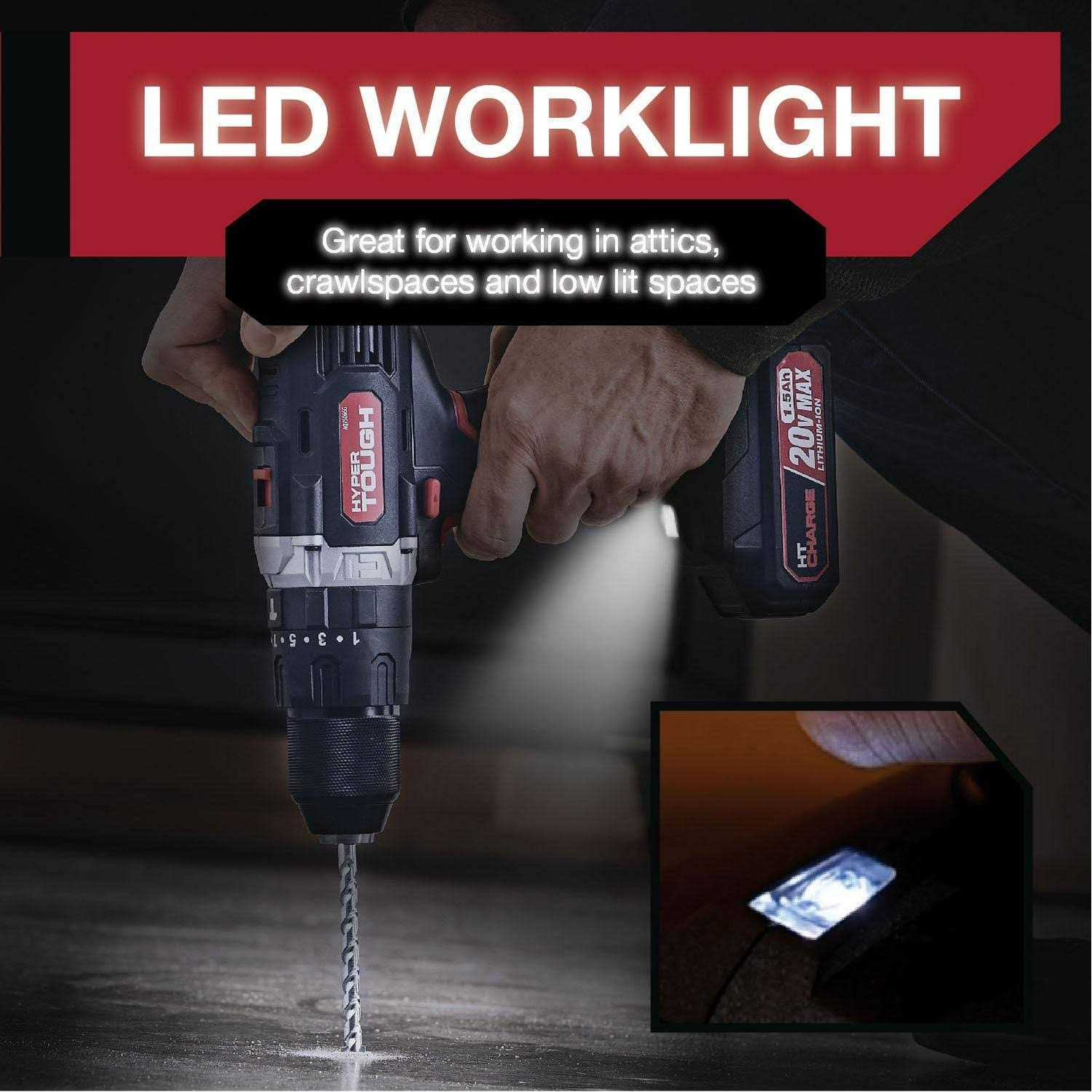 Hyper Tough 20V Max Lithium-ion Cordless Hammer Drill